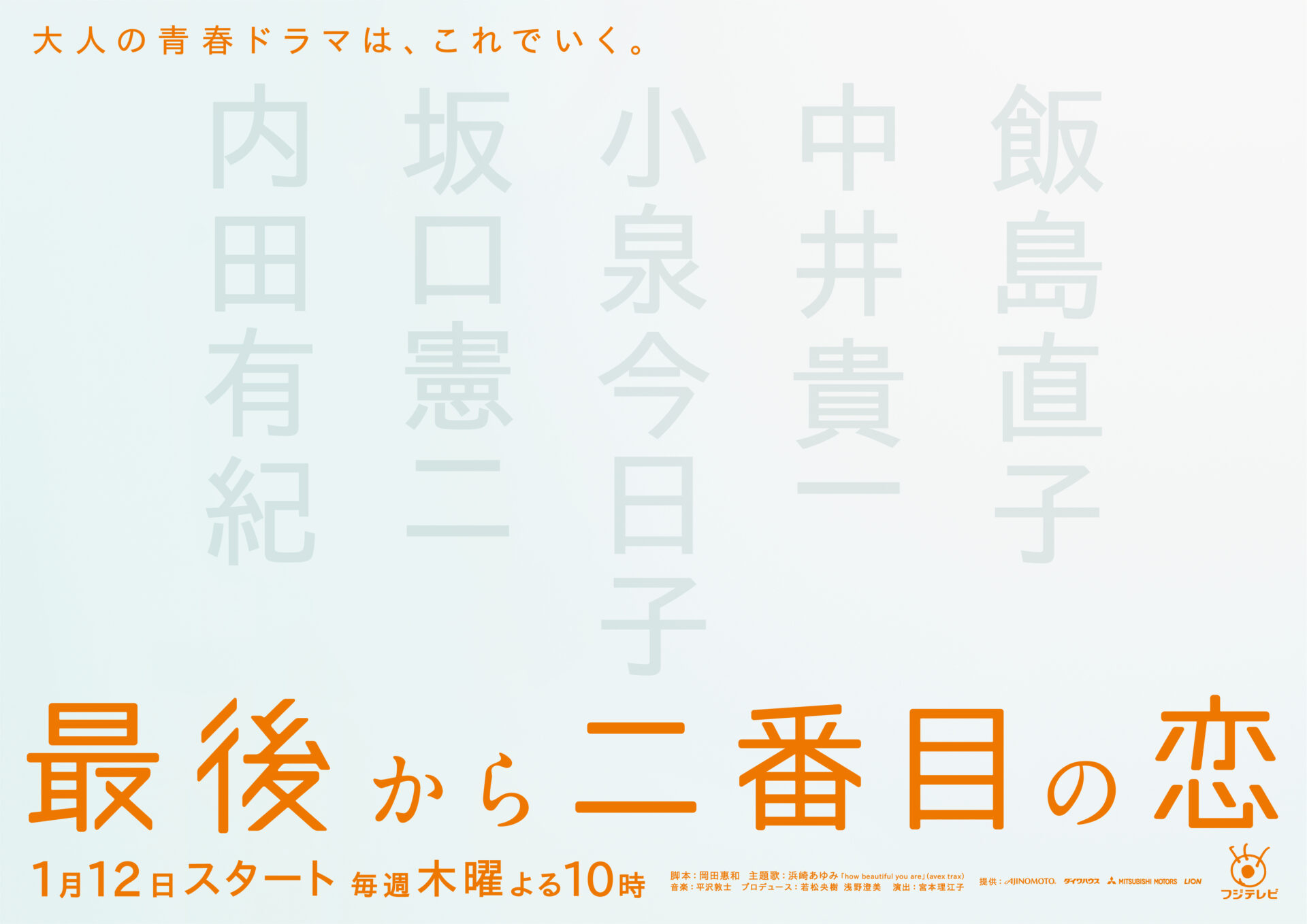 Designer : toruIMAI ArtDirector : kengoKATO Photographer : keibunMIYAMOTO Actor : kyokoKOIZUMI,kiichiNAKAI,kenjiSAKAGUCHI,yukiUCHIDA,naokoIIJIMA Advertising ENTERTAINMENT poster TUGBOAT CX : 最後から二番目の恋