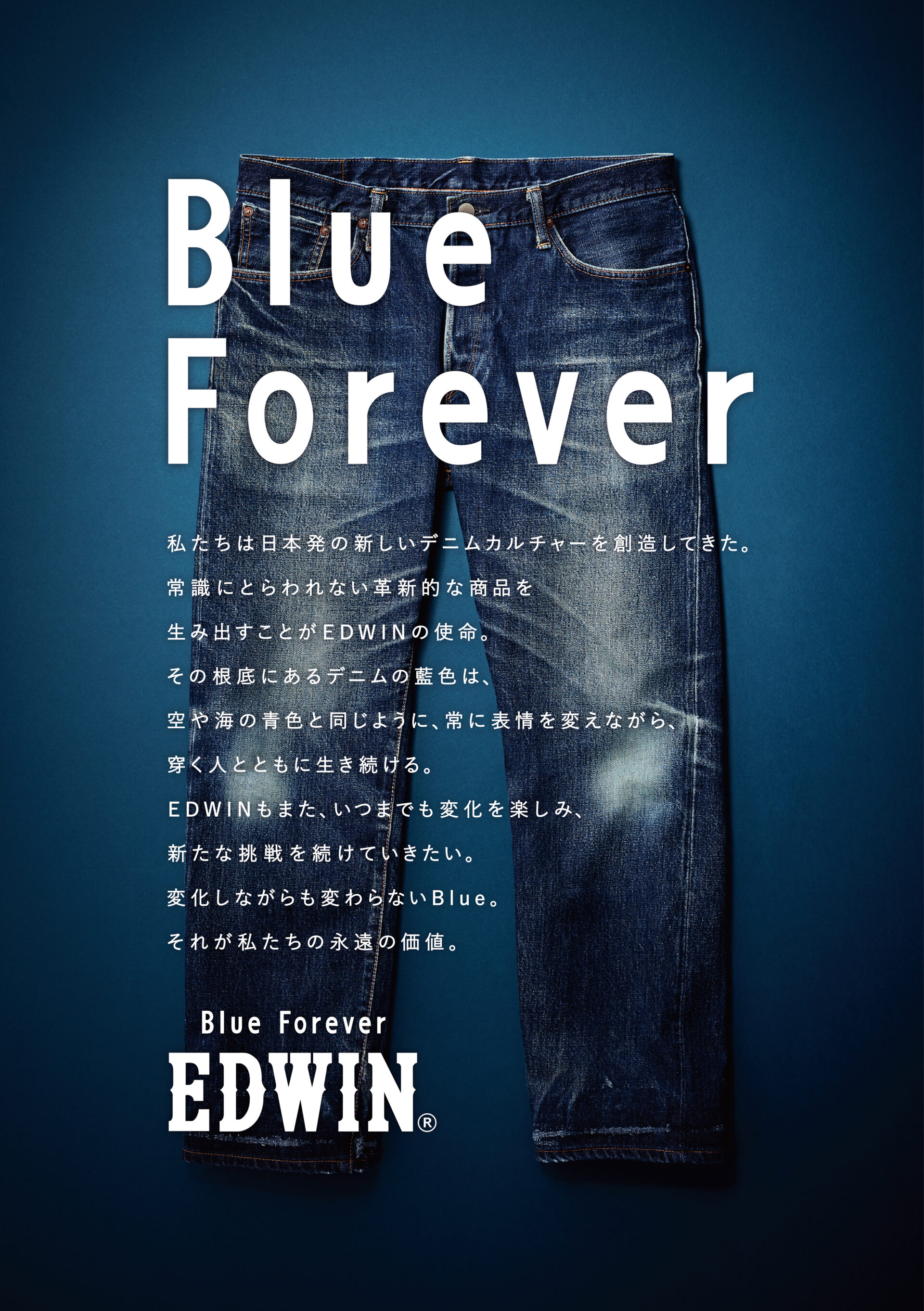 Designer : toruIMAI ArtDirector : kengoKATO CopyWriter : kojiAKAGI Photography : yujiUENOYAMA Advertising etc fashion Newspaper TUGBOAT EDWIN : Blue Forever