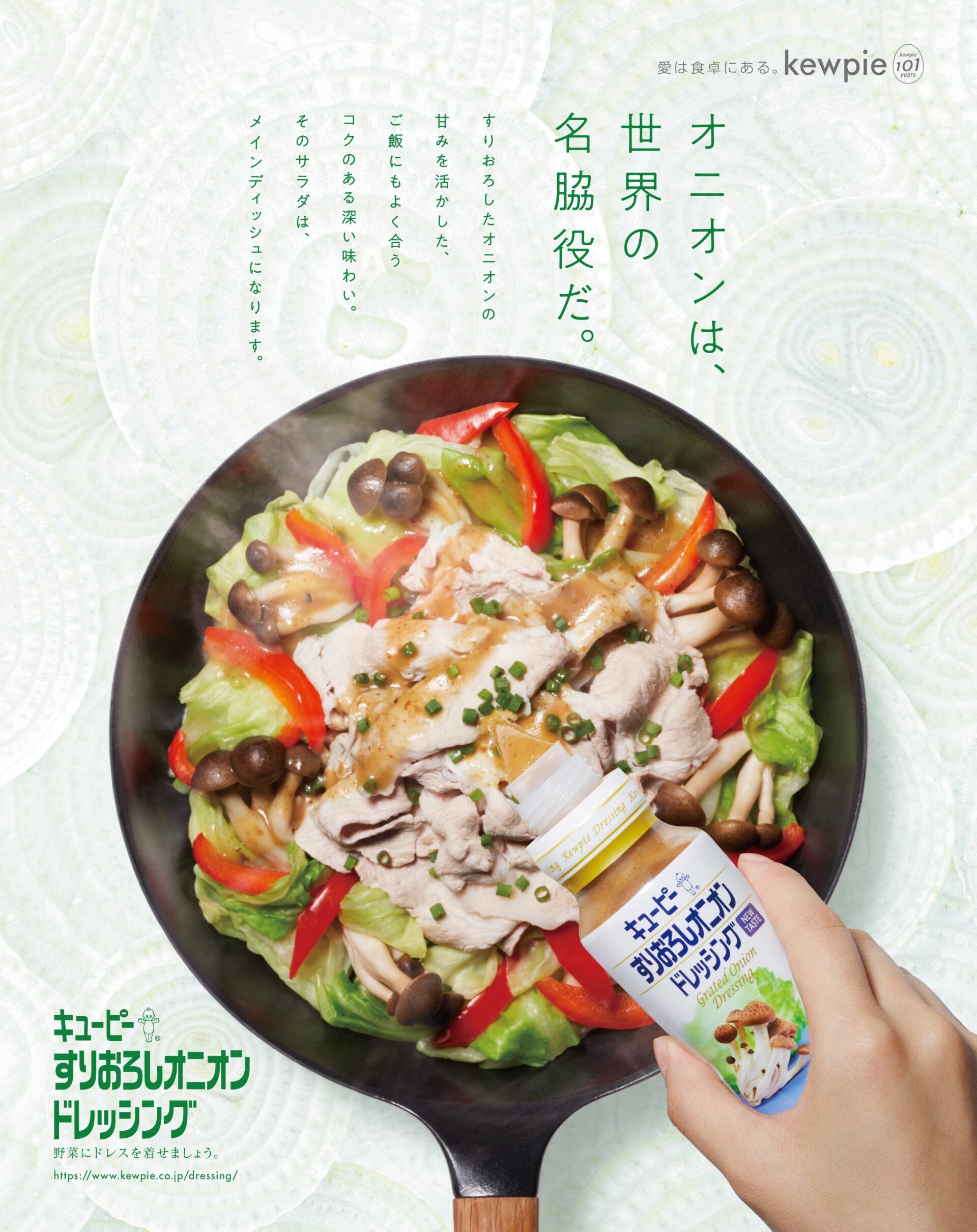 Designer : toruIMAI CreativeDirector : norihisaDOHMEN ArtDirector : kengoKATO CopyWriter : norihisaDOHMEN Photography : mikioHASUI Food : yurikoYAMANE Advertising food kewpie Magazine TUGBOAT kewpie : すりおろしオニオンドレッシング
