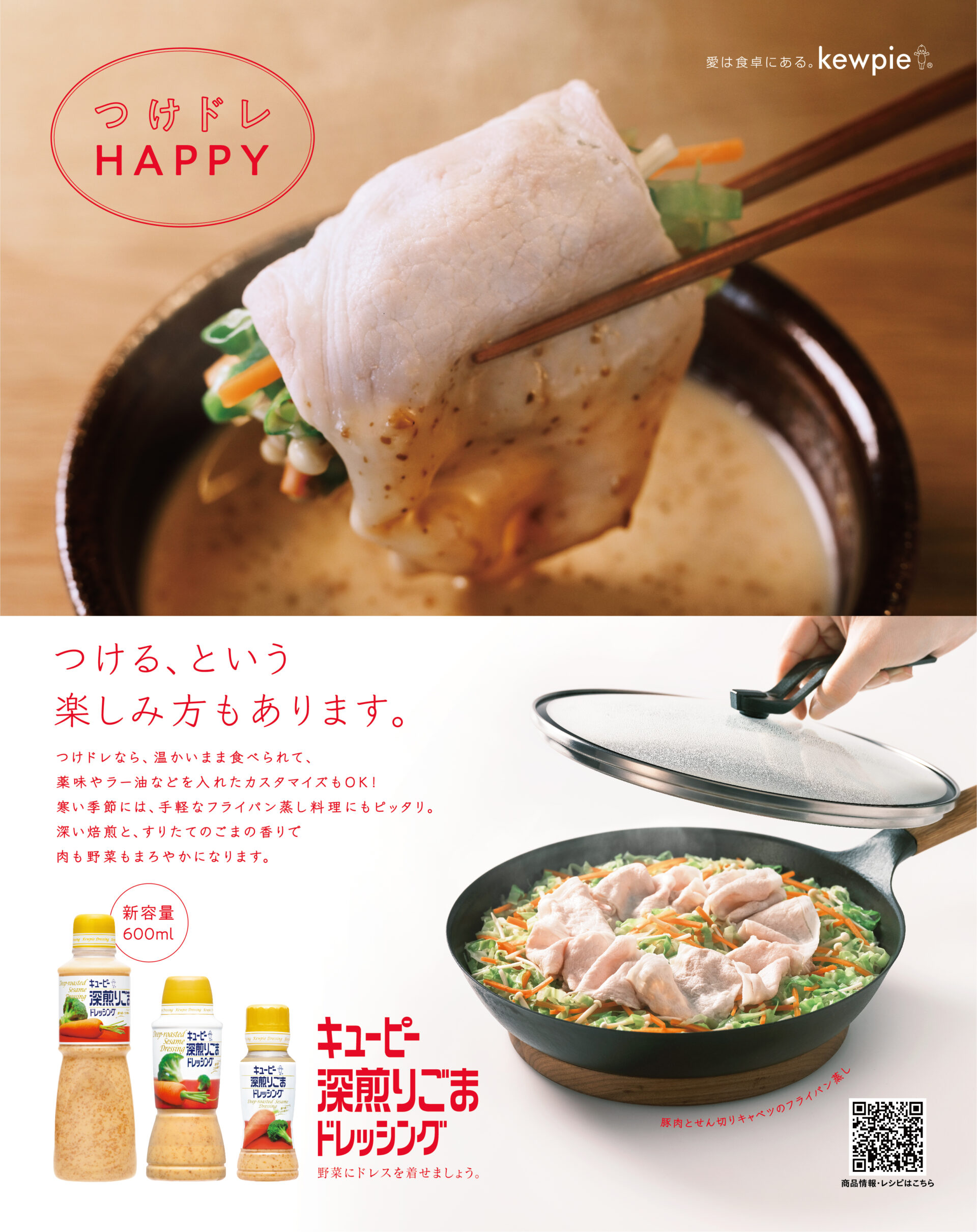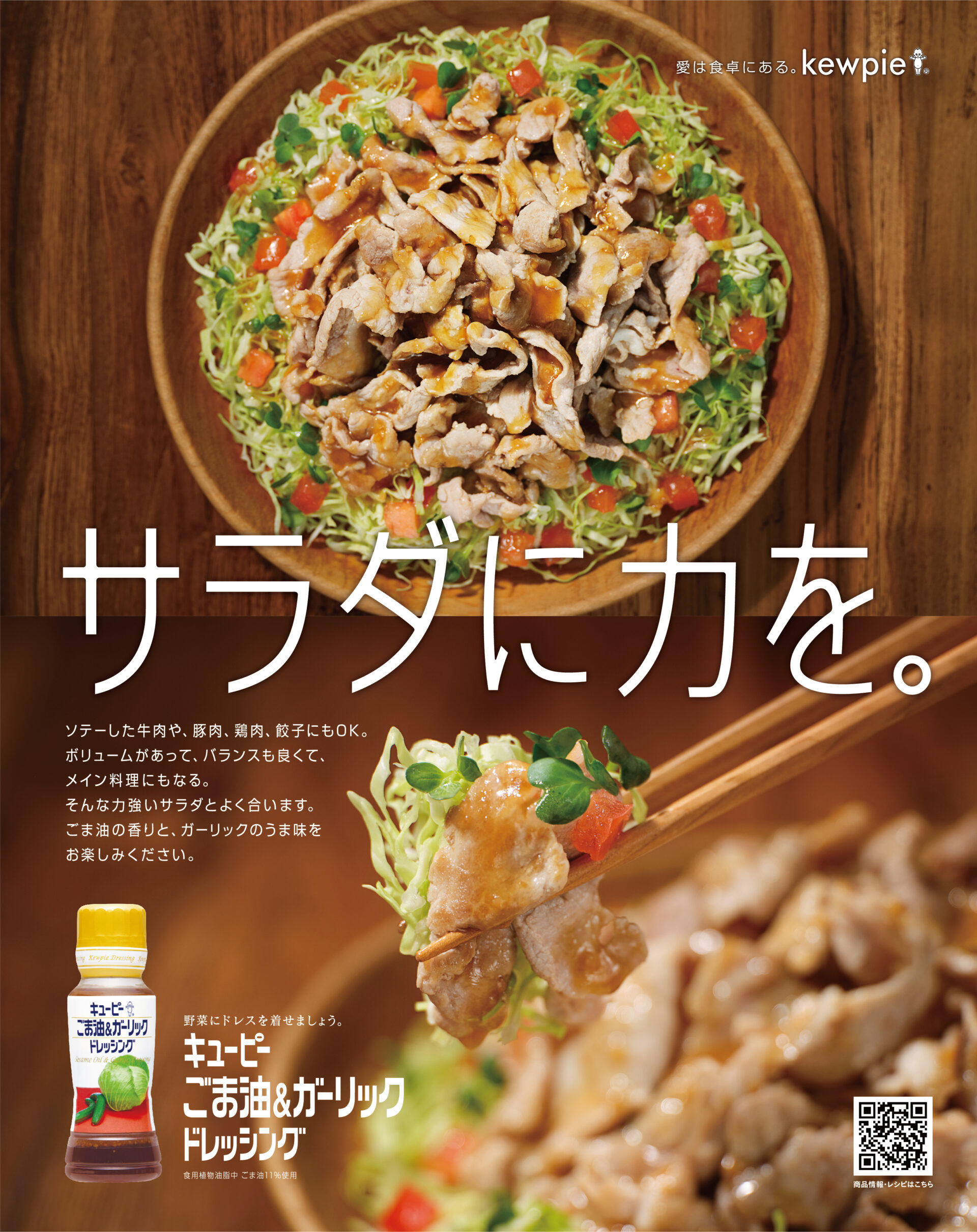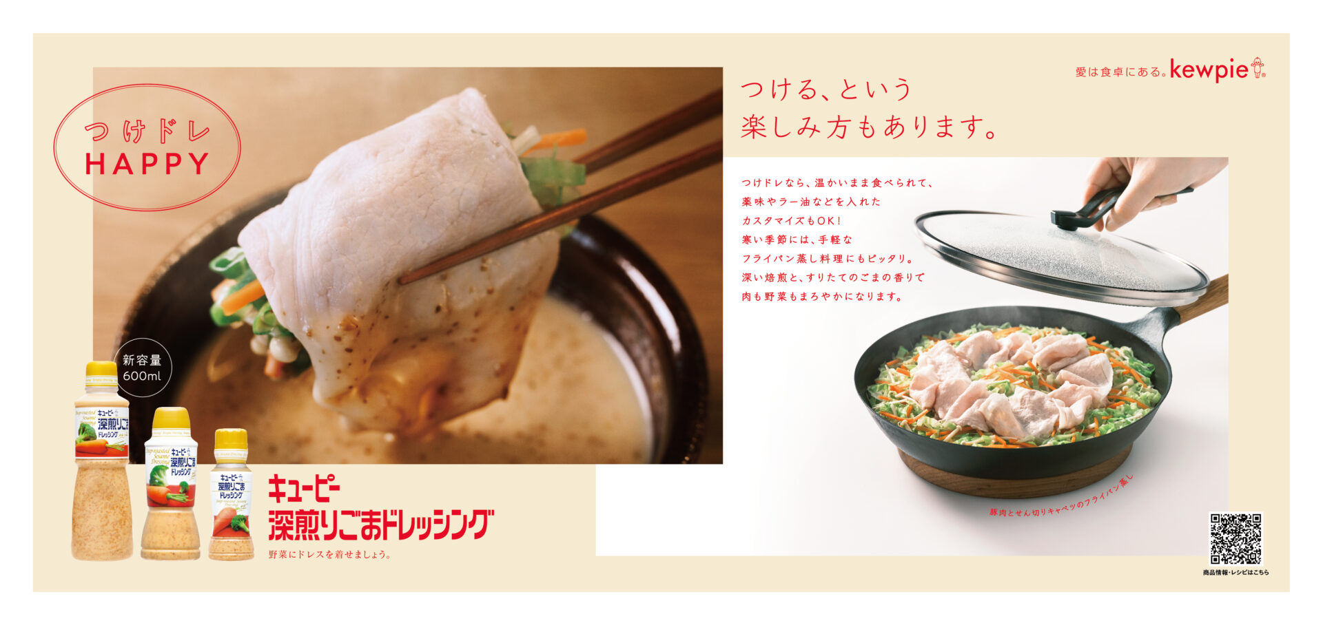 Designer : toruIMAI CreativeDirector : norihisaDOHMEN ArtDirector : kengoKATO CopyWriter : norihisaDOHMEN Photography : yujiUENOYAMA Food : yurikoYAMANE Advertising food kewpie poster TUGBOAT kewpie : 深煎りごまドレッシング