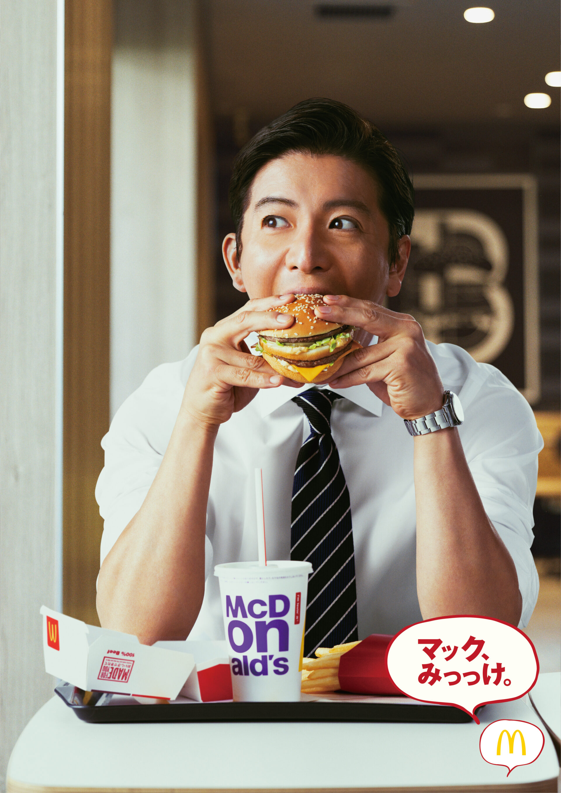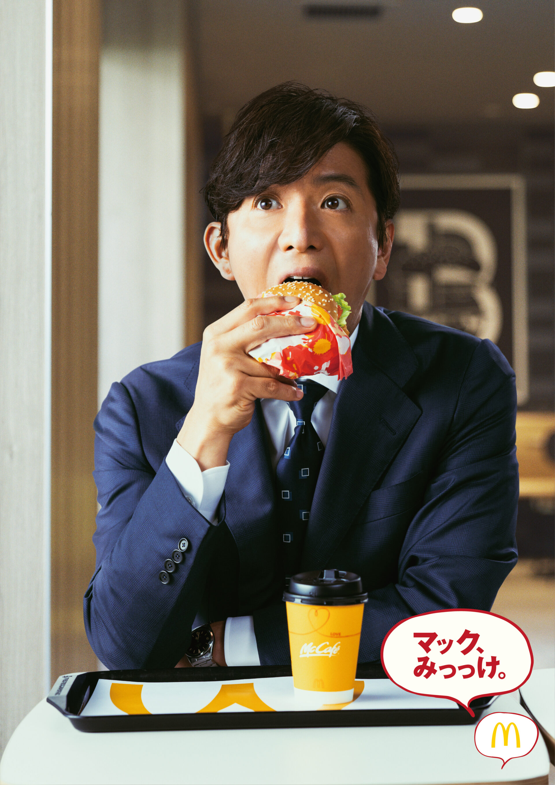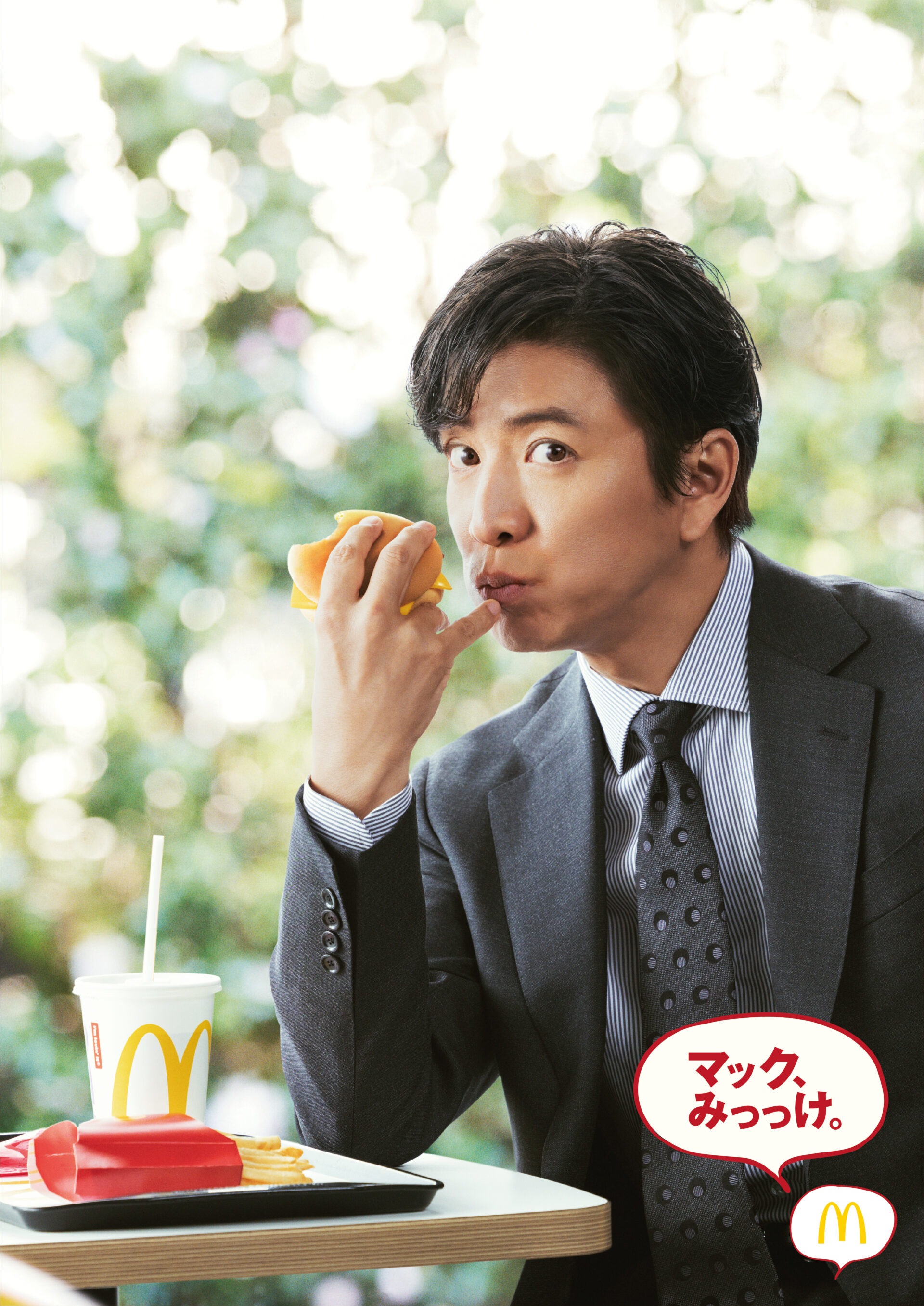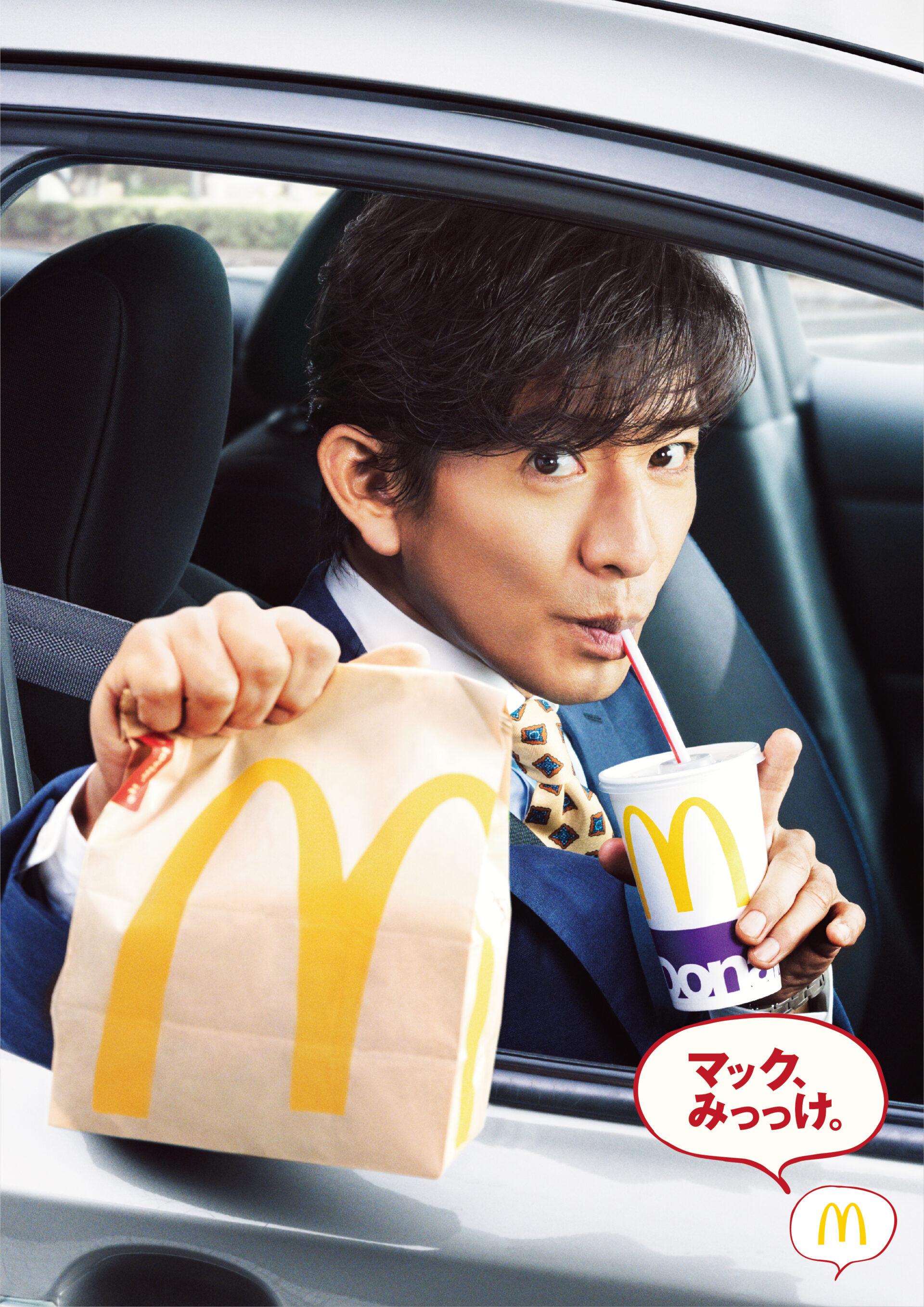 Designer : toruIMAI CreativeDirector : tetsuroASO ArtDirector : seijoKAWAGUCHI Photographer : munetakaTOKUYAMA Actor : takuyaKIMURA Advertising etc food poster TUGBOAT mcdonalds