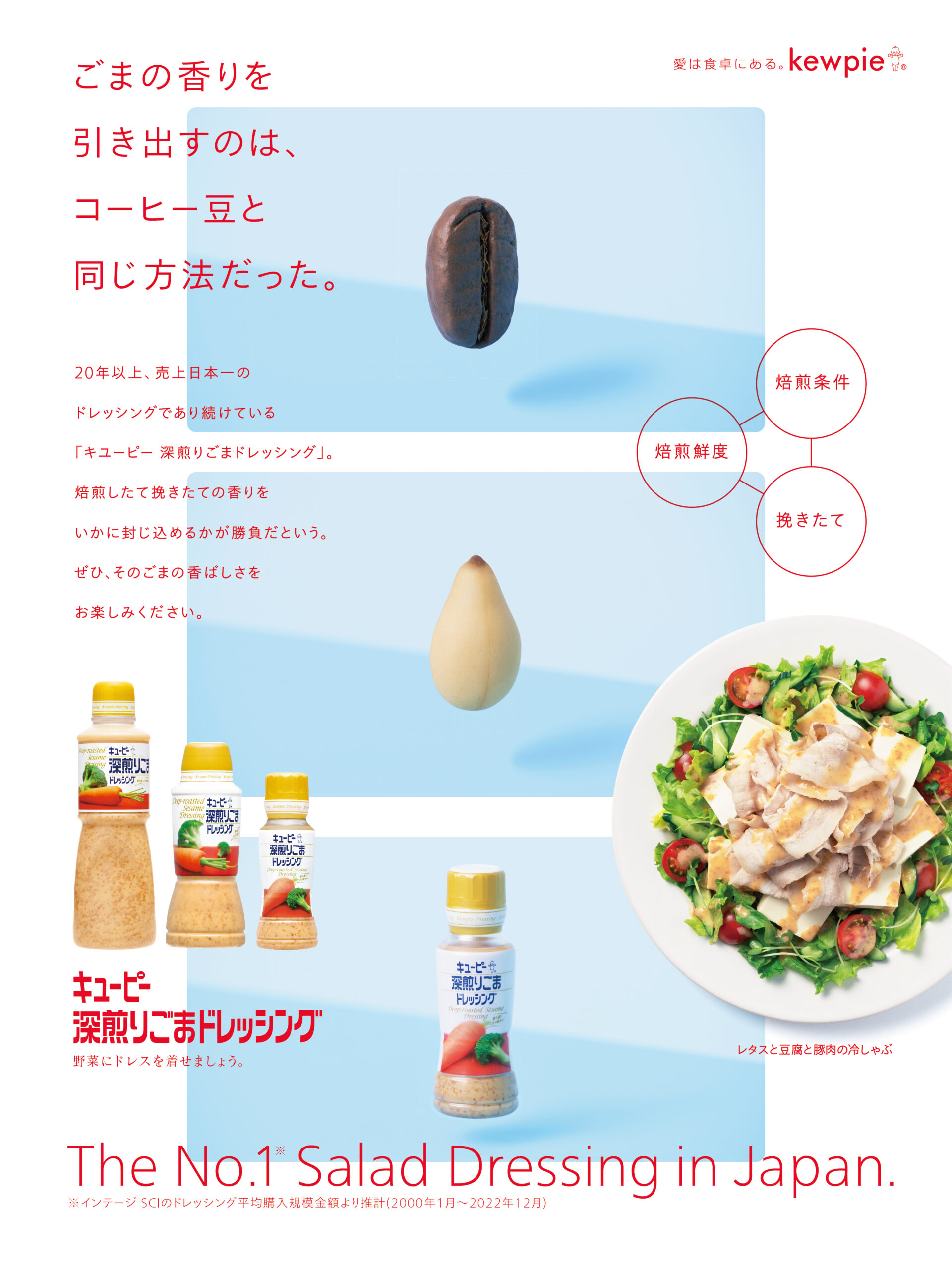 Designer : toruIMAI CreativeDirector : norihisaDOHMEN ArtDirector : kengoKATO CopyWriter : norihisaDOHMEN Advertising food kewpie Magazine TUGBOAT kewpie : 深煎りごまドレッシング