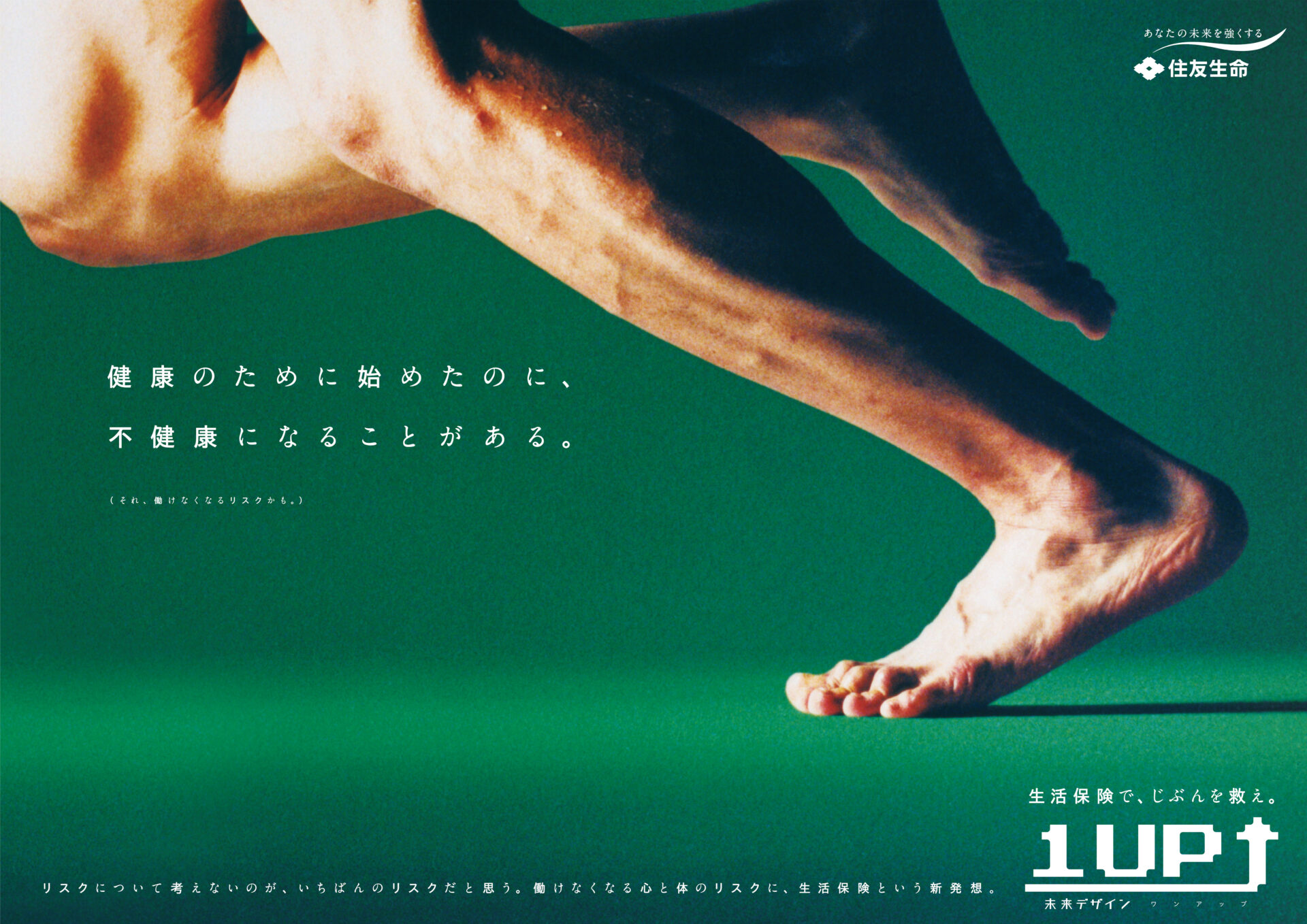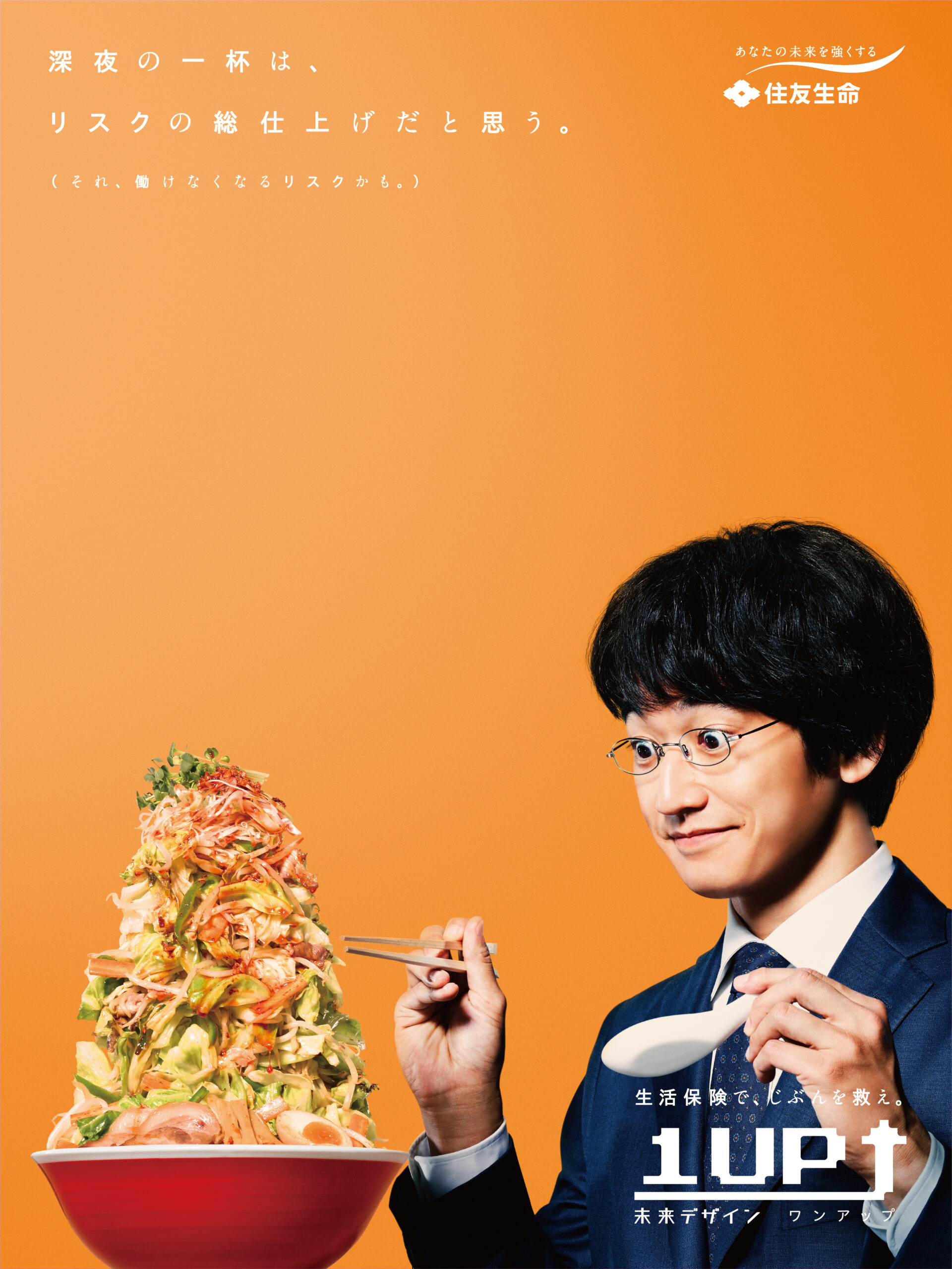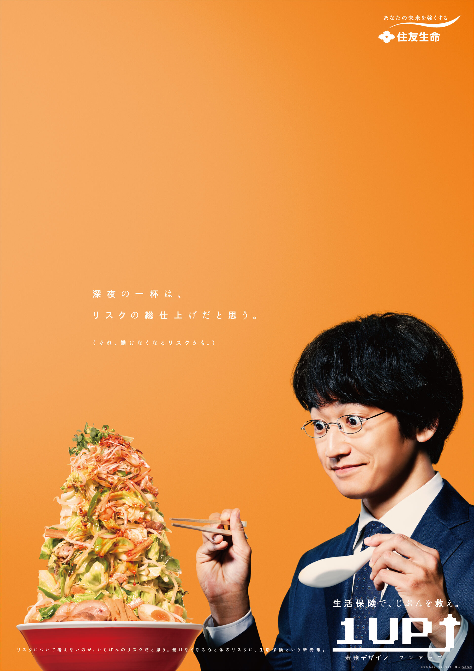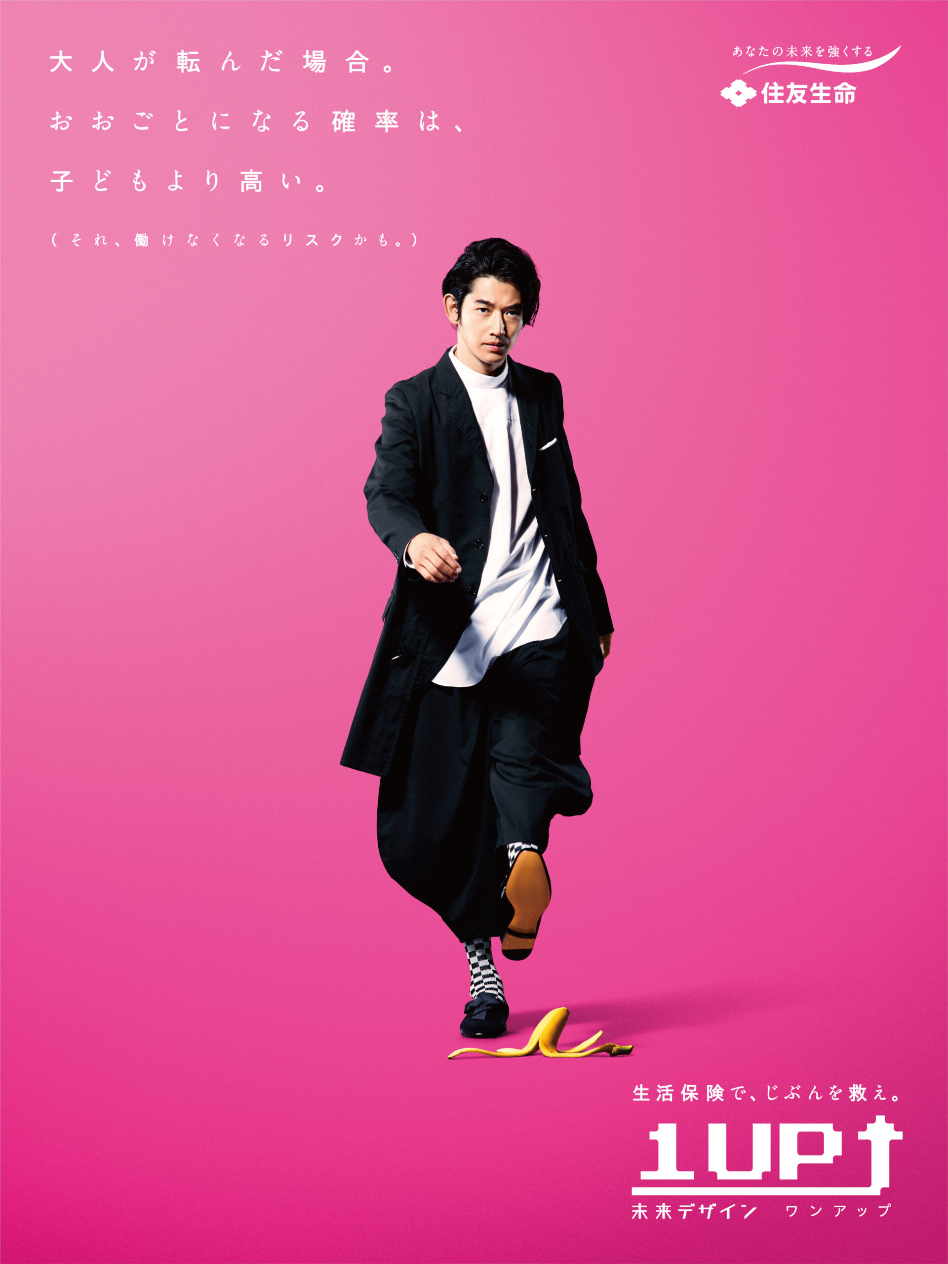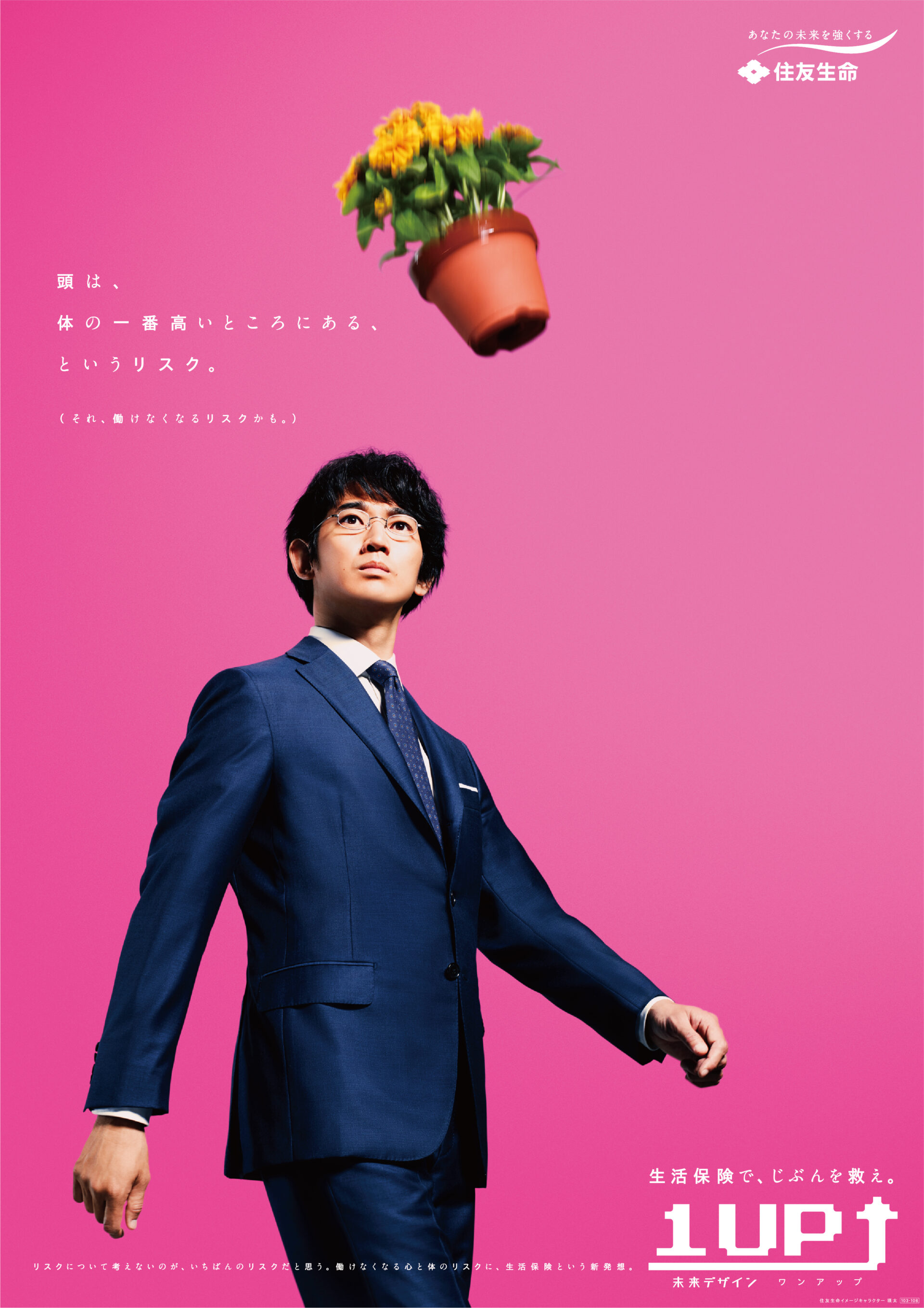 Designer : toruIMAI CreativeDirector : tetsuroASO ArtDirector : kengoKATO CopyWriter : kinyaOKAMOTO Photographer : keibunMIYAMOTO Actor : eitaNAGAYAMA Advertising insurance poster SUMITOMO LIFE TUGBOAT SUMITOMO LIFE INSURANCES : 1UP