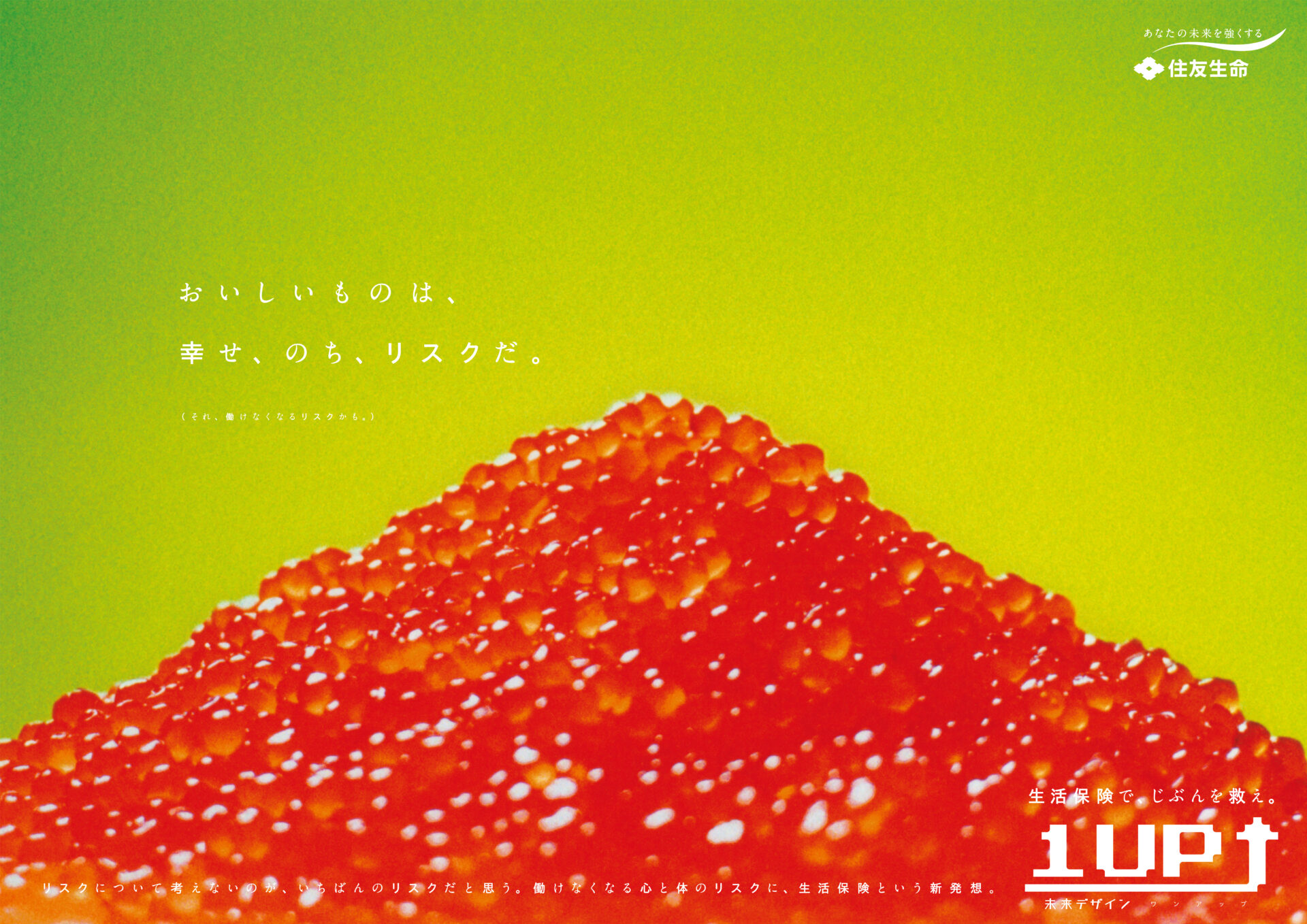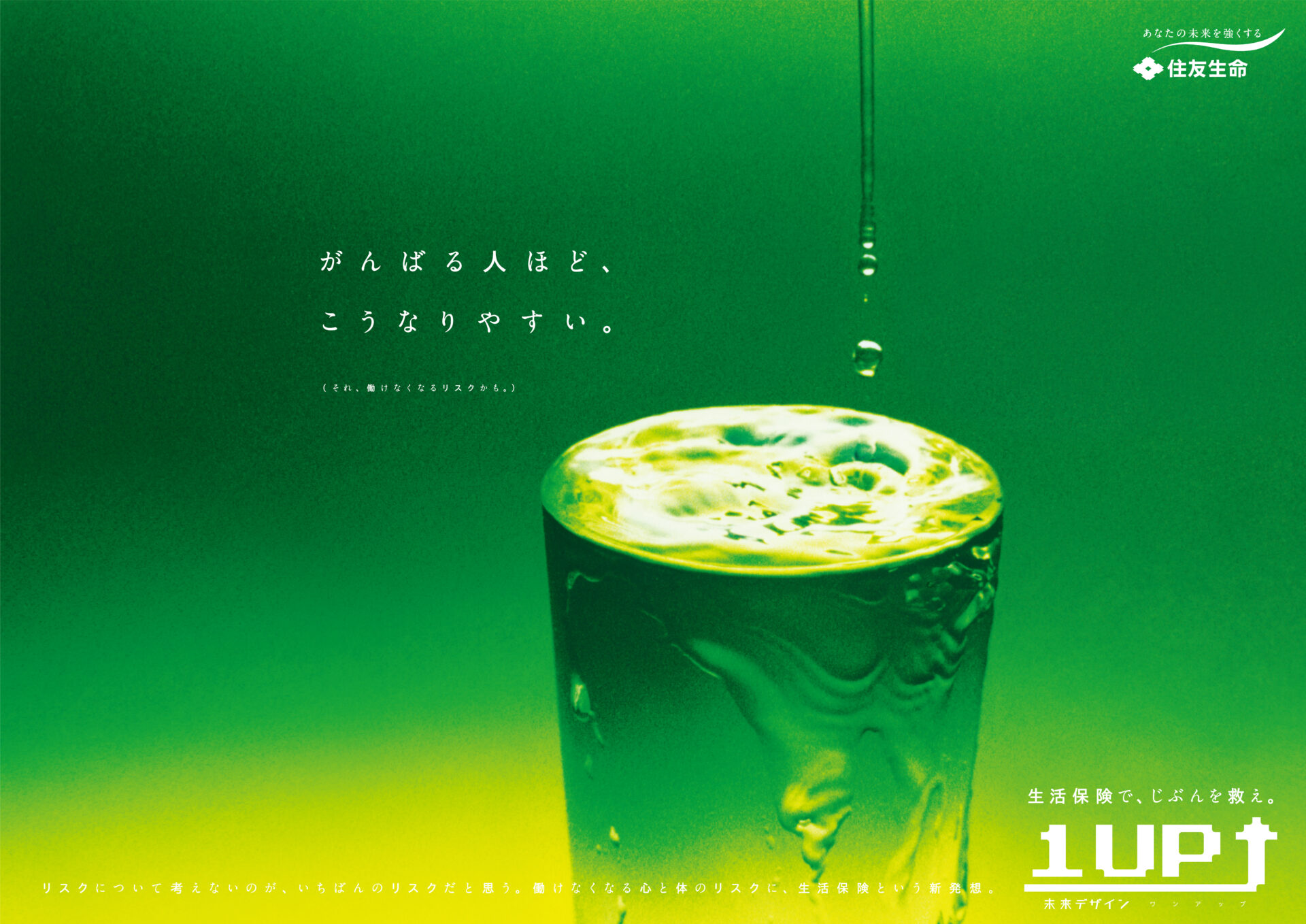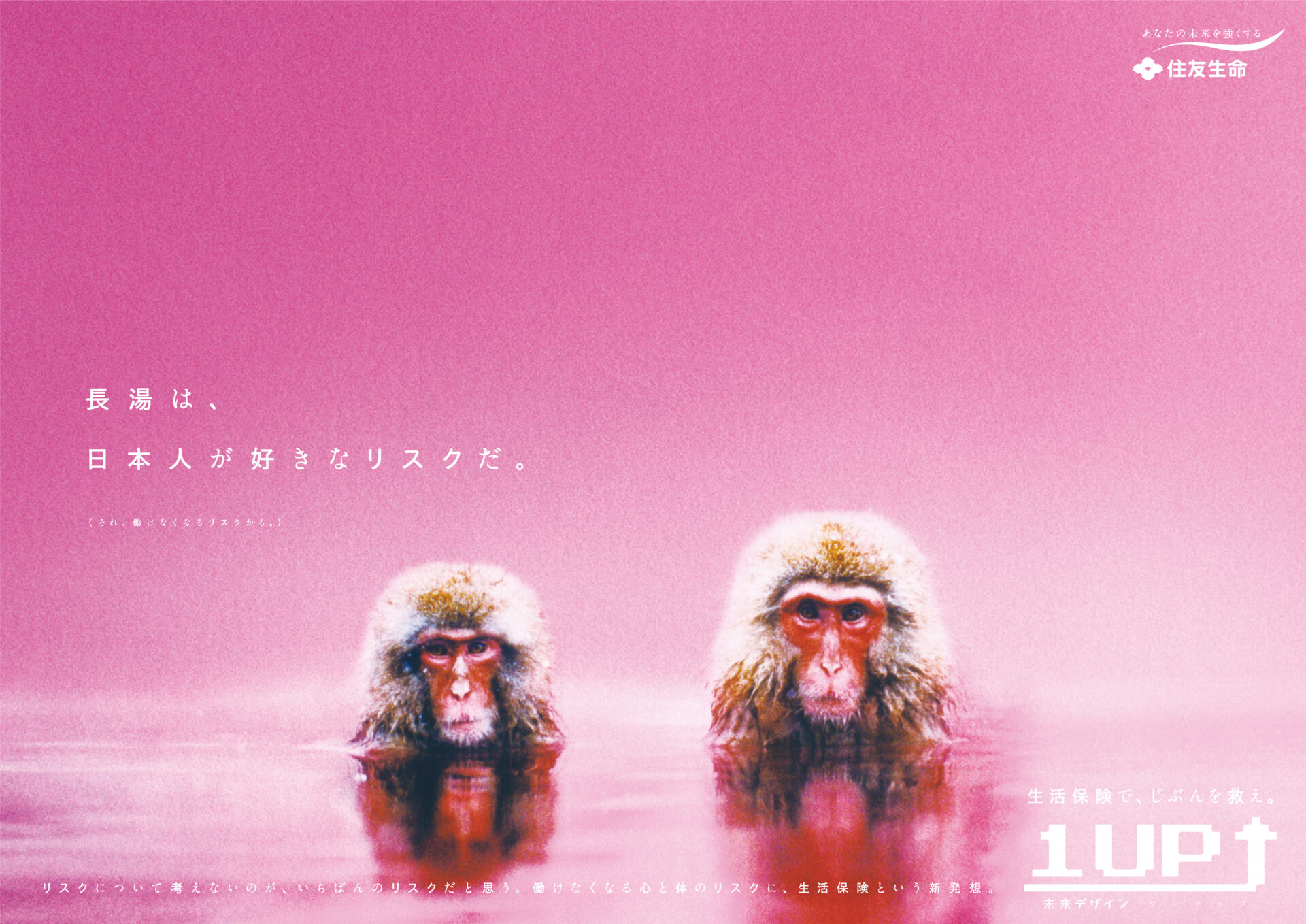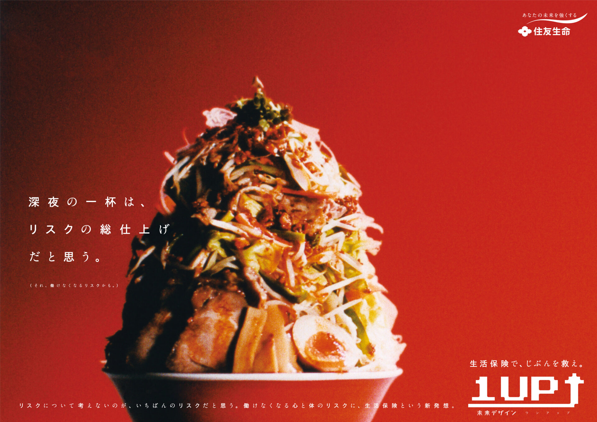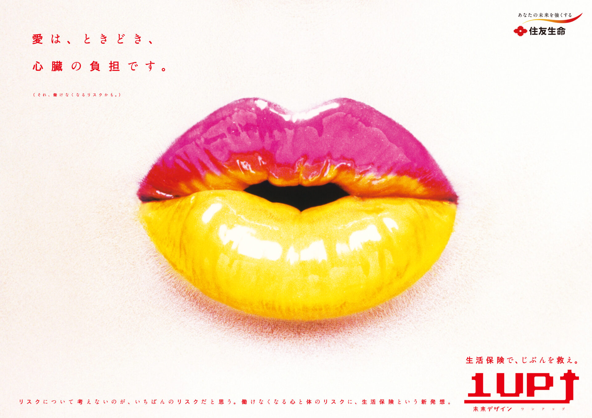 Designer : toruIMAI CreativeDirector : tetsuroASO ArtDirector : kengoKATO CopyWriter : kinyaOKAMOTO Advertising insurance poster SUMITOMO LIFE TUGBOAT SUMITOMO LIFE INSURANCES : 1UP