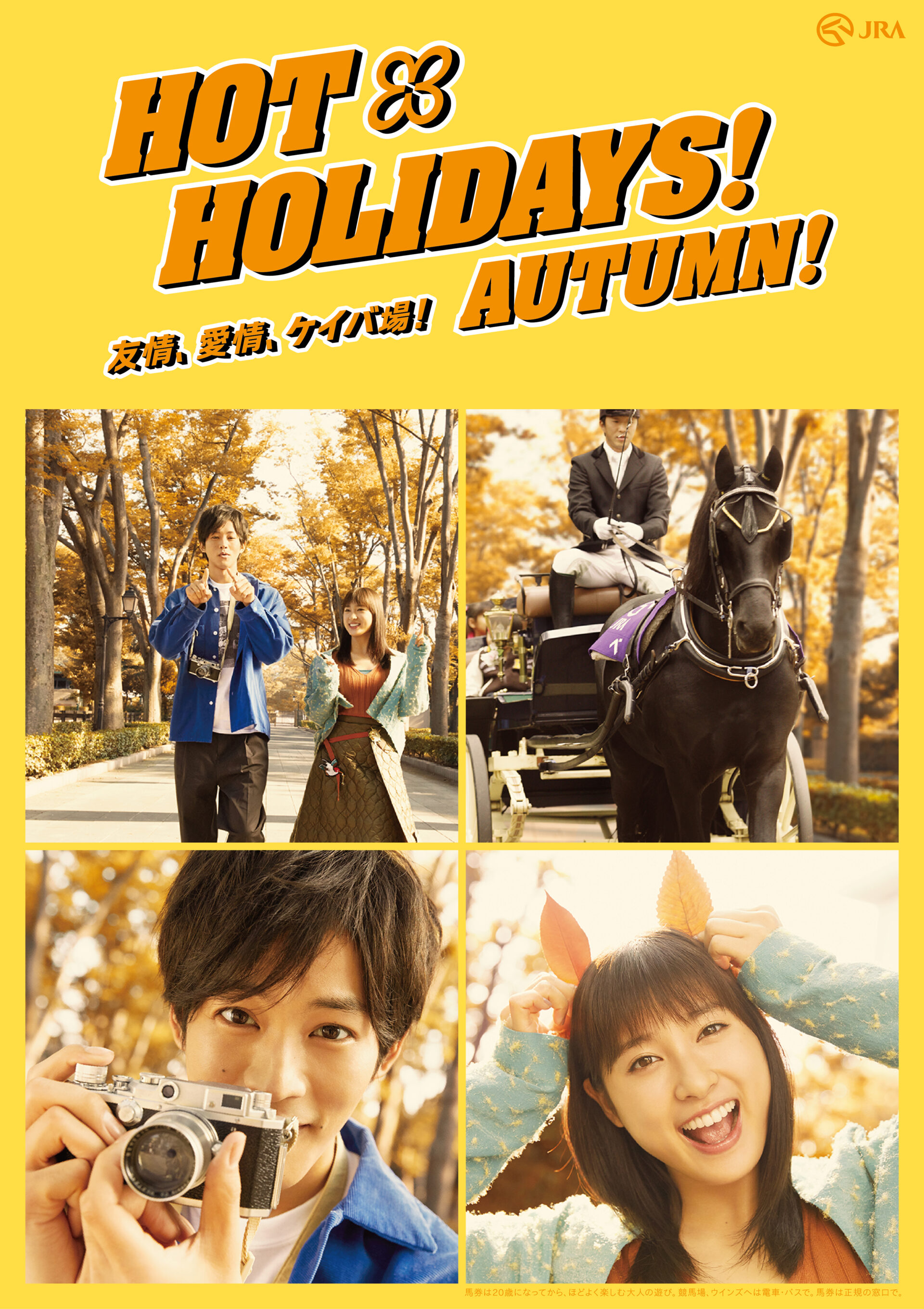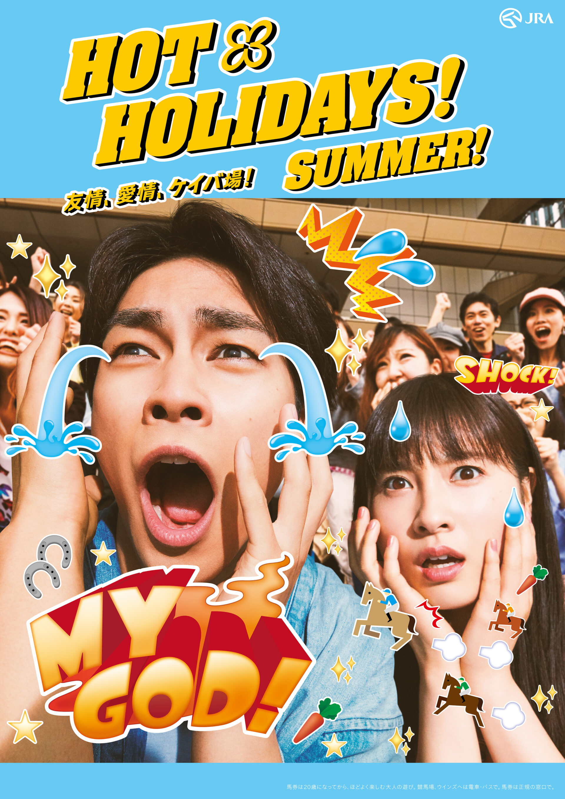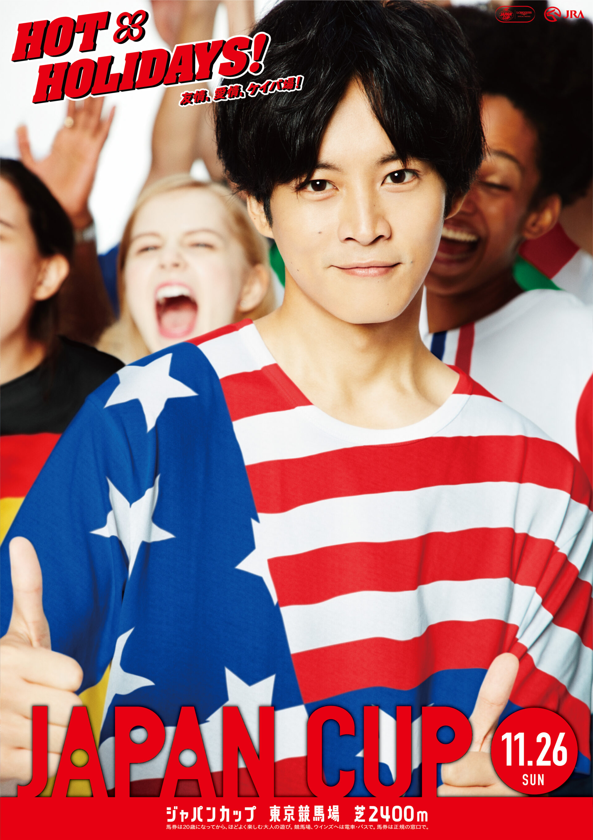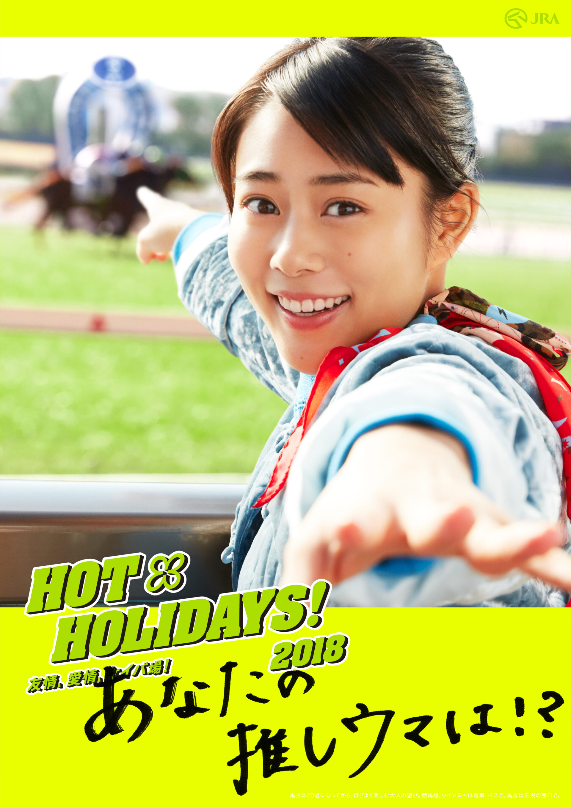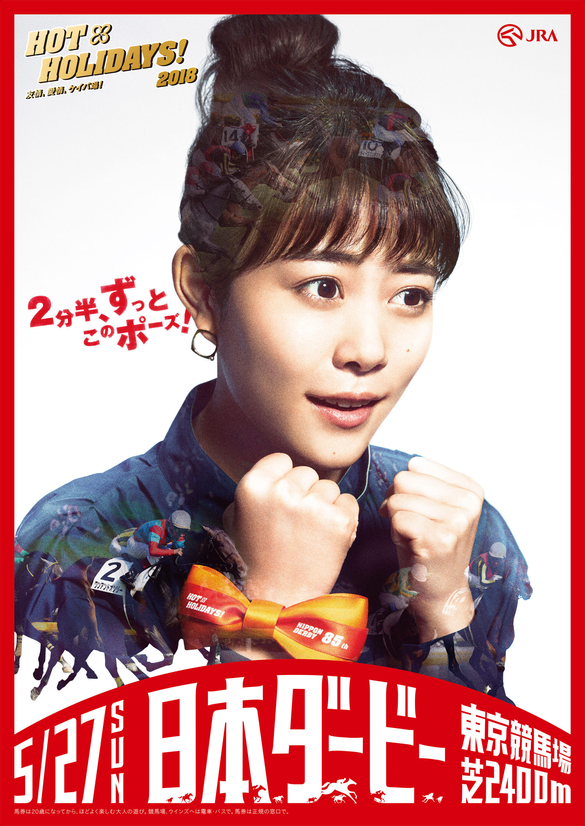 Designer : toruIMAI CreativeDirector : tetsuroASO ArtDirector : kengoKATO Photographer : munetakaTOKUYAMA Actor : yuyaYAGIRA Advertising horse racing JRA poster TUGBOAT JRA : HOT HOLIDAYS! 2018