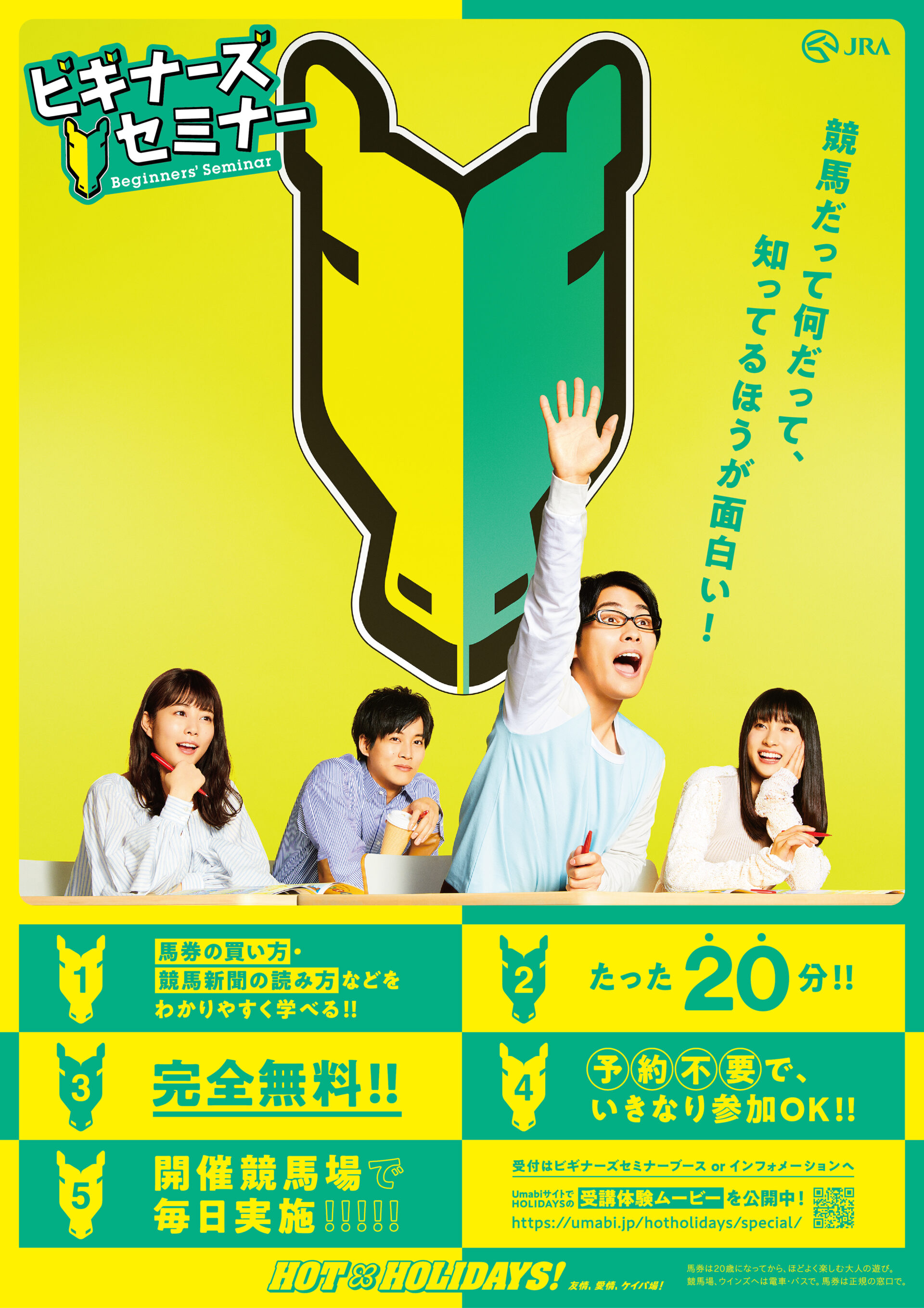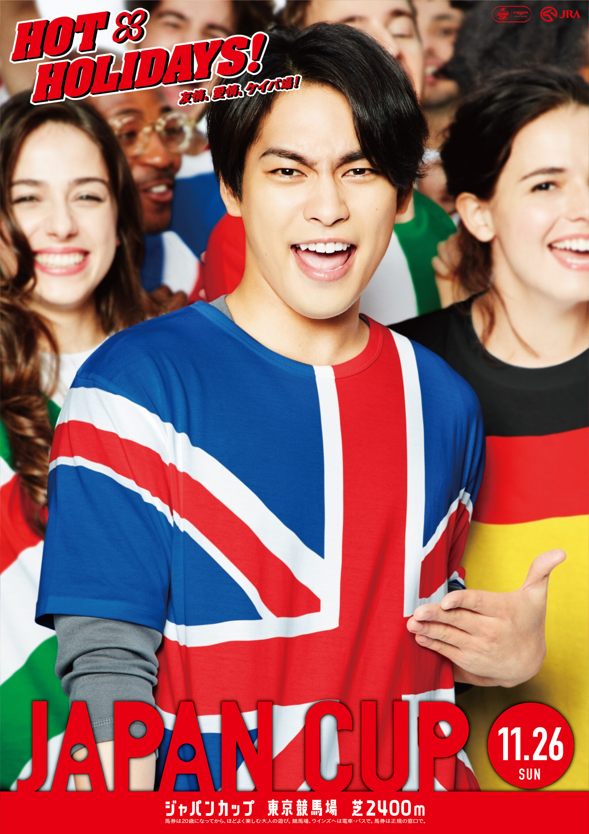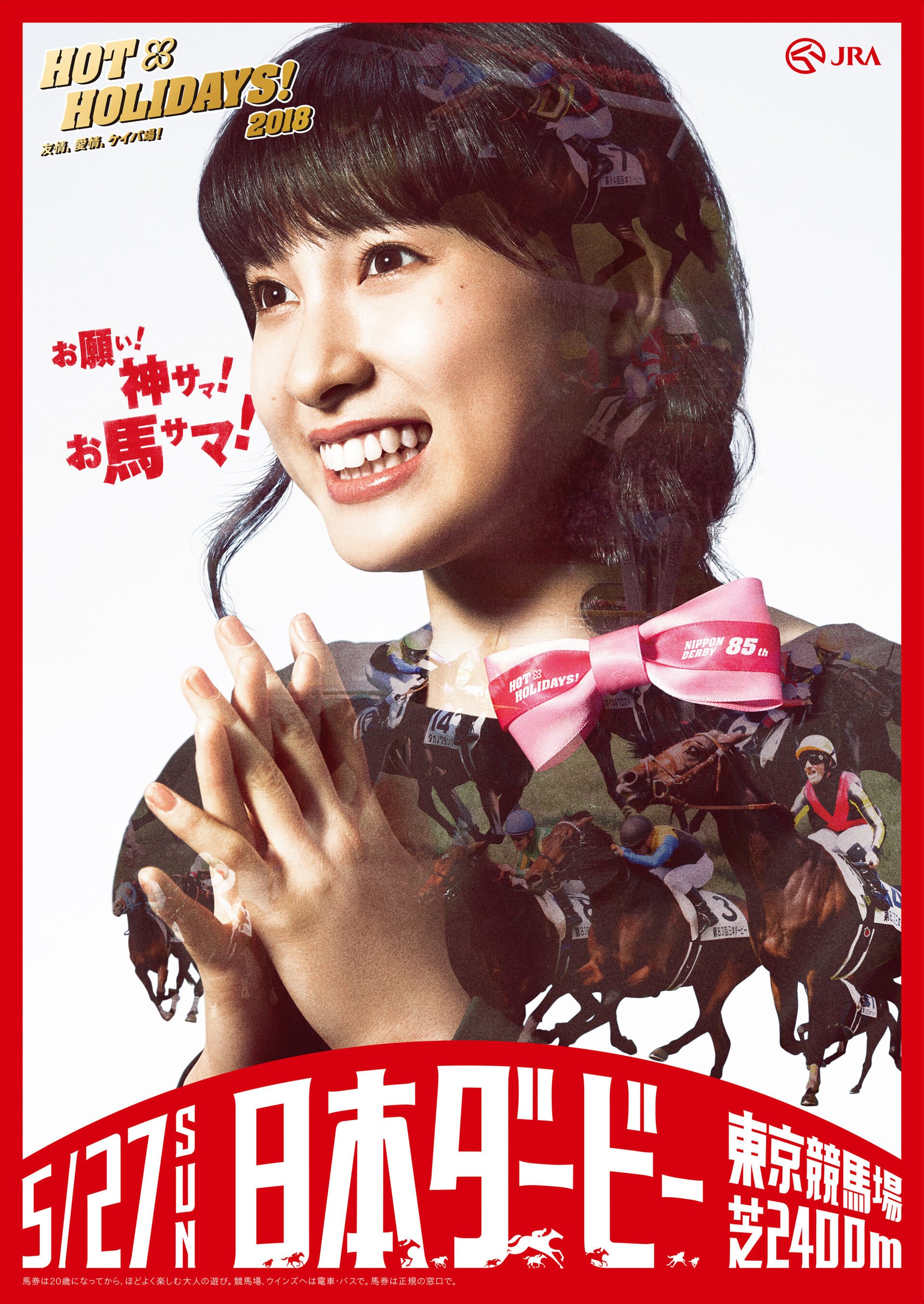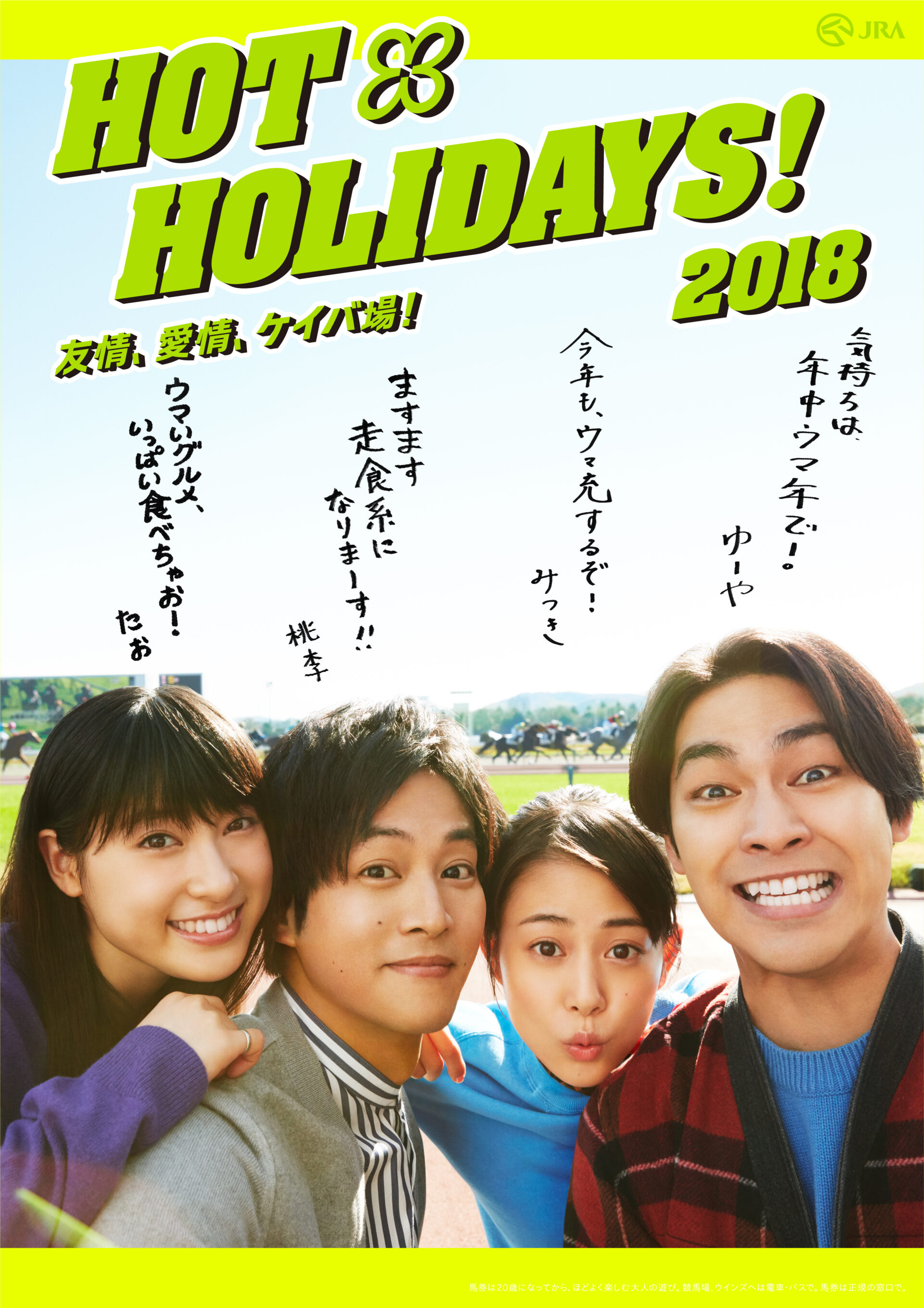 Designer : toruIMAI CreativeDirector : tetsuroASO ArtDirector : kengoKATO Photographer : munetakaTOKUYAMA Actor : yuyaYAGIRA Advertising horse racing JRA poster TUGBOAT JRA : HOT HOLIDAYS! 2018