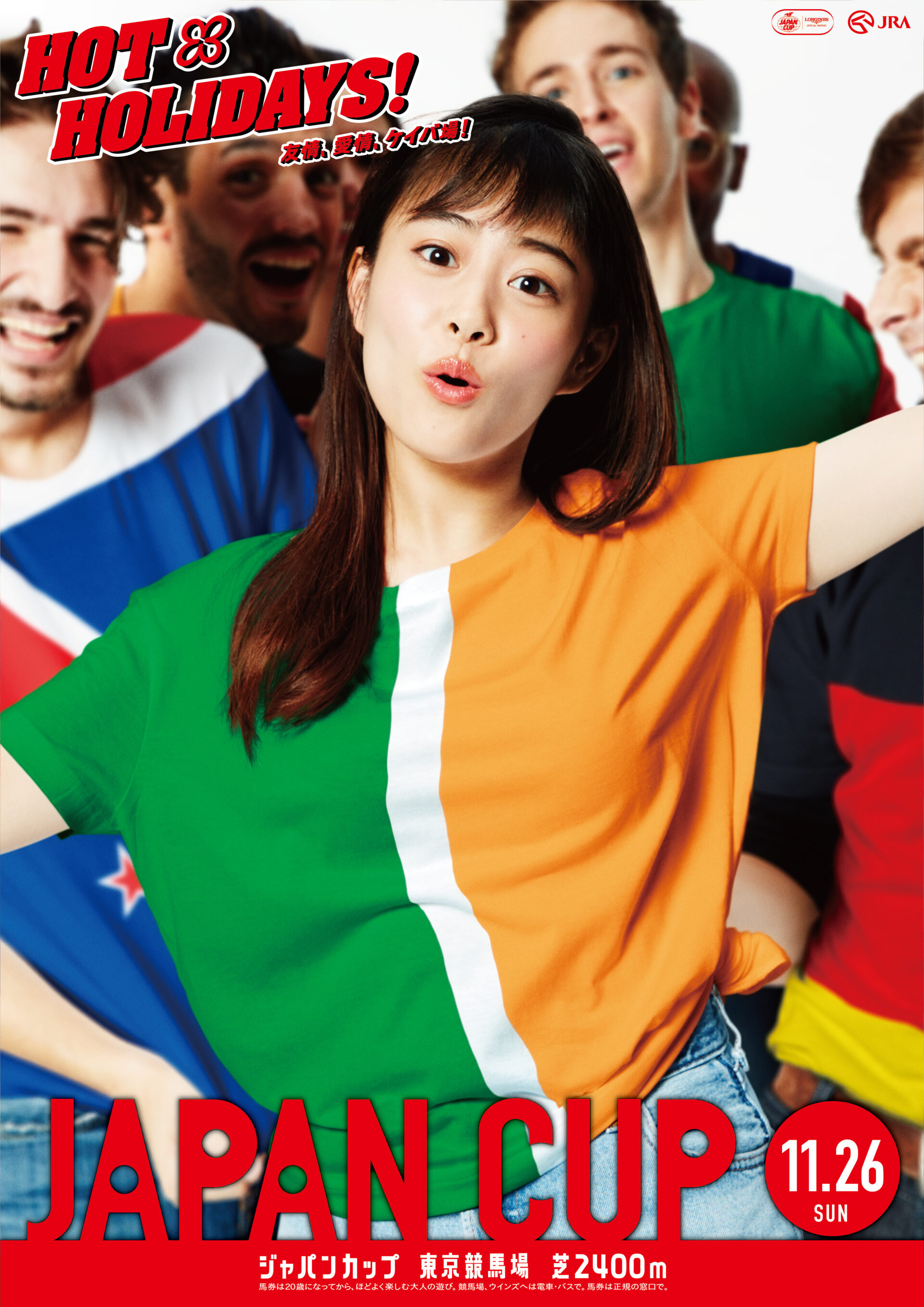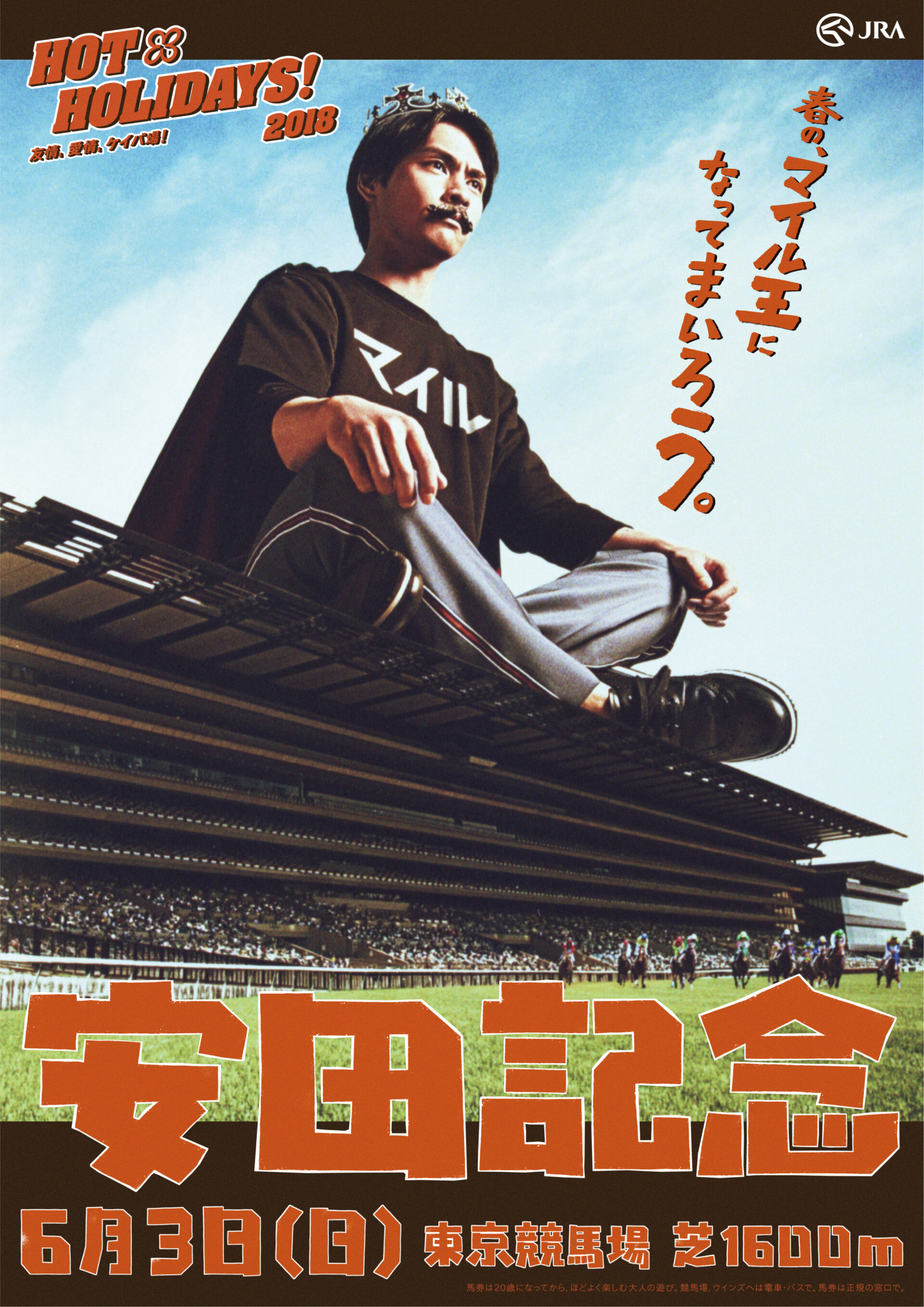 Designer : toruIMAI CreativeDirector : tetsuroASO ArtDirector : kengoKATO Photographer : munetakaTOKUYAMA Actor : taoTSUCHIYA Advertising horse racing JRA poster TUGBOAT JRA : HOT HOLIDAYS! 2018