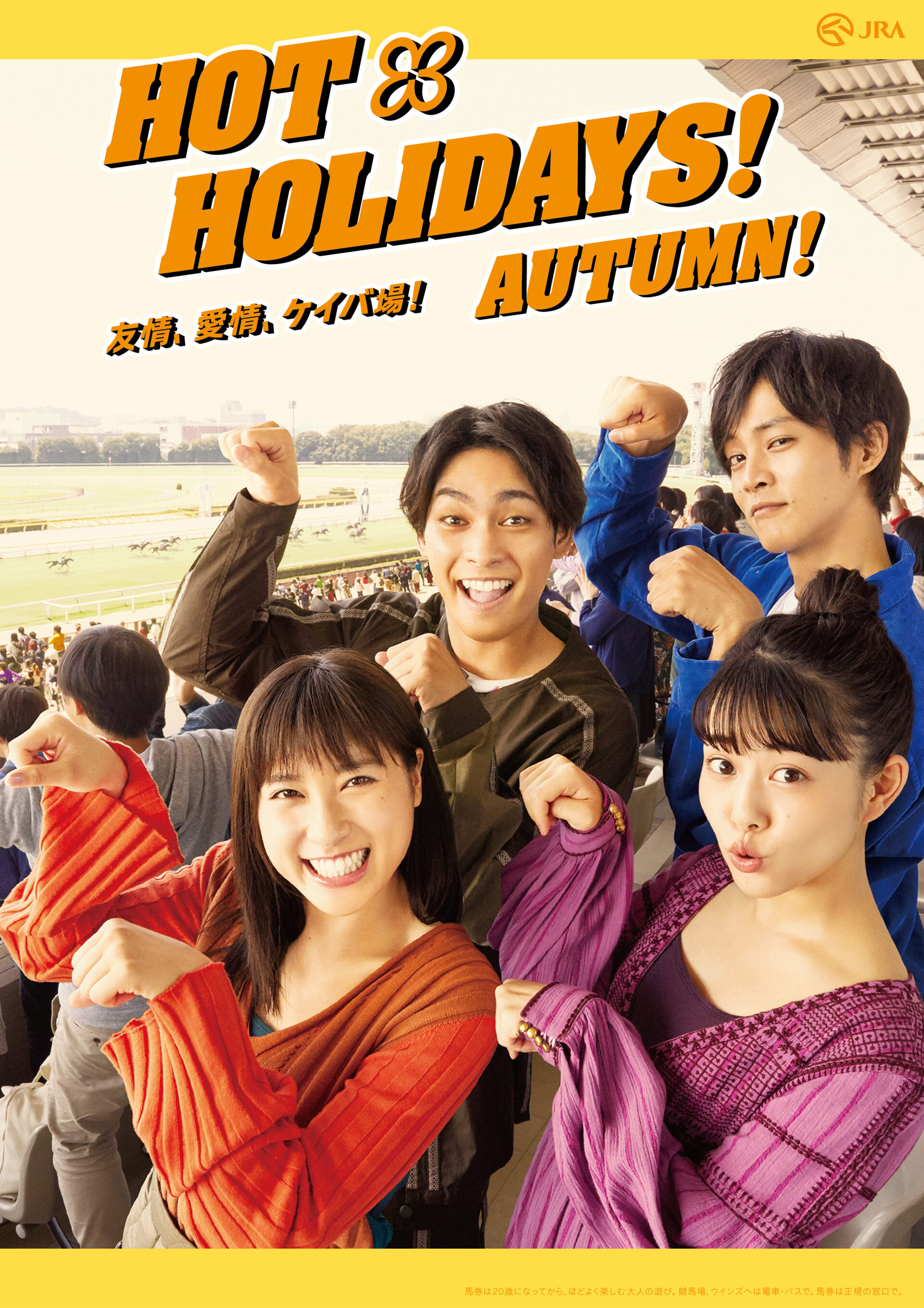 Designer : toruIMAI CreativeDirector : tetsuroASO ArtDirector : kengoKATO Photographer : keisukeANZAI Actor : toriMATSUZAKA,mitsukiTAKAHATA,yuyaYAGIRA,taoTSUCHIYA Advertising horse racing JRA Newspaper poster TUGBOAT JRA : HOT HOLODAYS!!