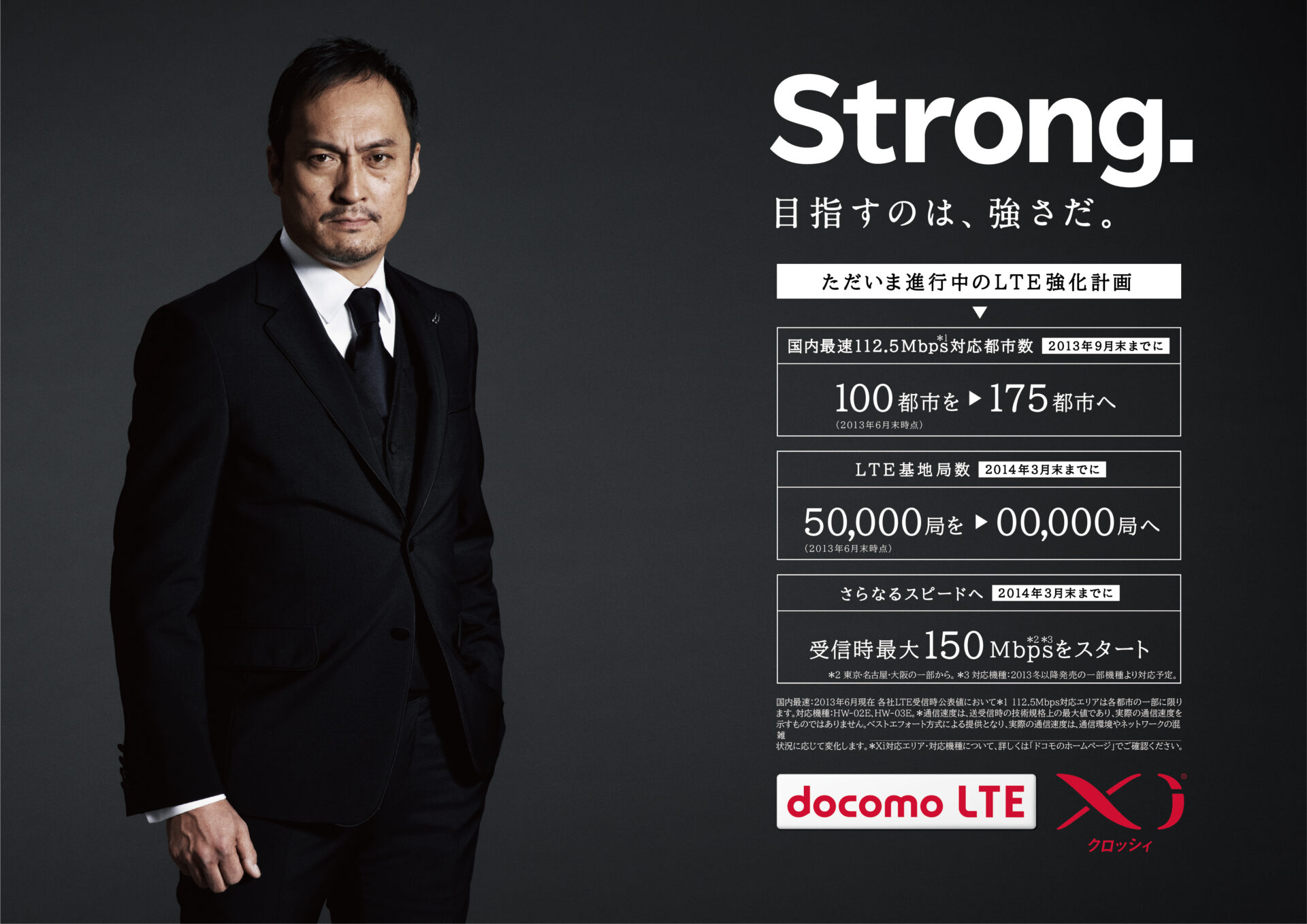Designer : toruIMAI CreativeDirector : TUGBOAT ArtDirector : kengoKATO CopyWriter : norihisaDohmen Photographer : kazunariTAJIMA Actor : keisukeHONDA Advertising LEAFLET NTT Telecommunications TUGBOAT NTTdocomo : Strong.