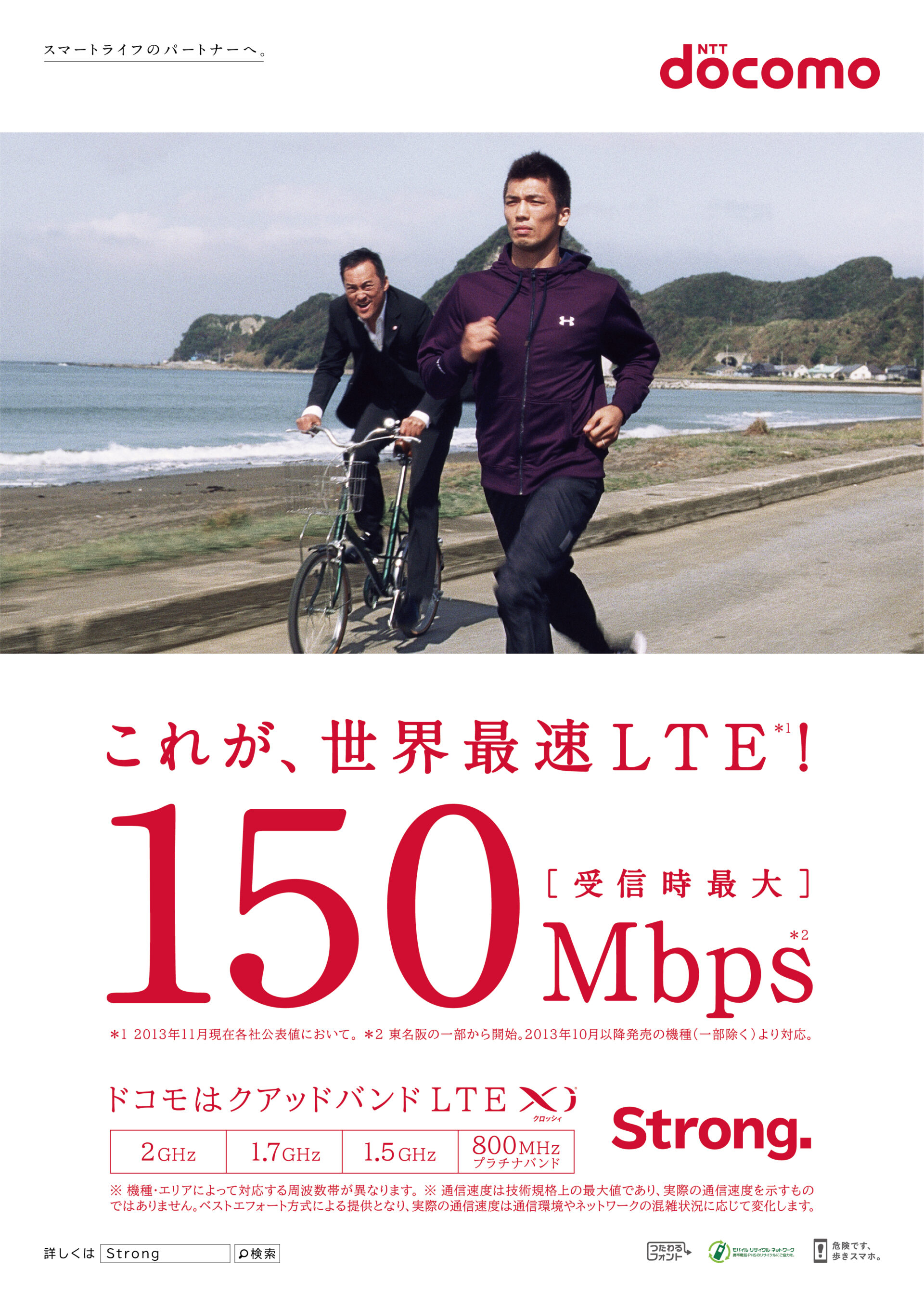 Designer : toruIMAI CreativeDirector : TUGBOAT ArtDirector : kengoKATO CopyWriter : norihisaDohmen Photographer : keibunMIYAMOTO Actor : ryotaMURATA,kenWATANABE Advertising LEAFLET NTT poster Telecommunications TUGBOAT NTTdocomo : Strong.