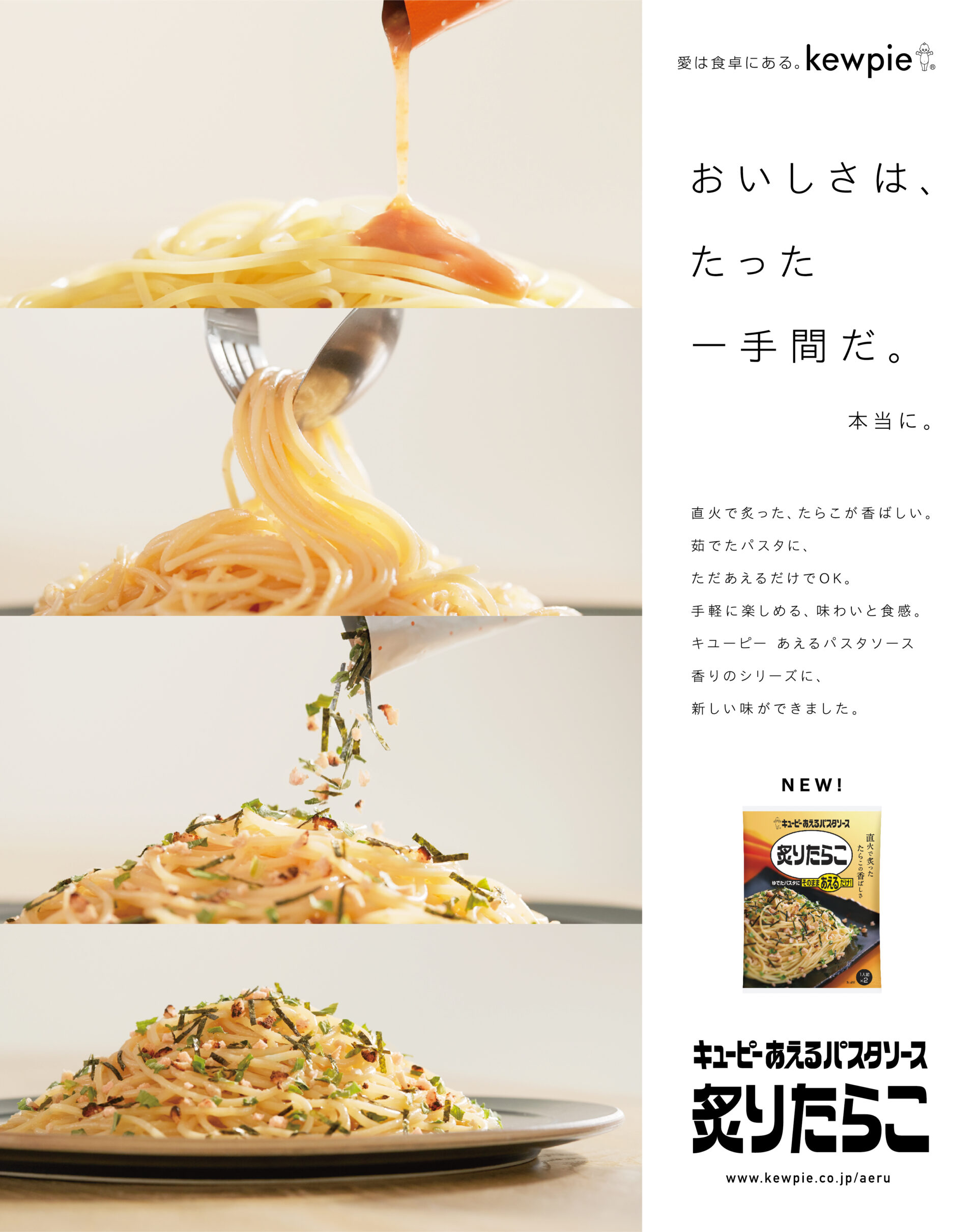 Designer : toruIMAI CreativeDirector : norihisaDOHMEN ArtDirector : kengoKATO CopyWriter : norihisaDOHMEN Photography : sayuki INOUE Photoretouch : yosukeMOCHIDUKI Food : yurikoYAMANE Advertising food kewpie Magazine TUGBOAT kewpie : あえるパスタソース