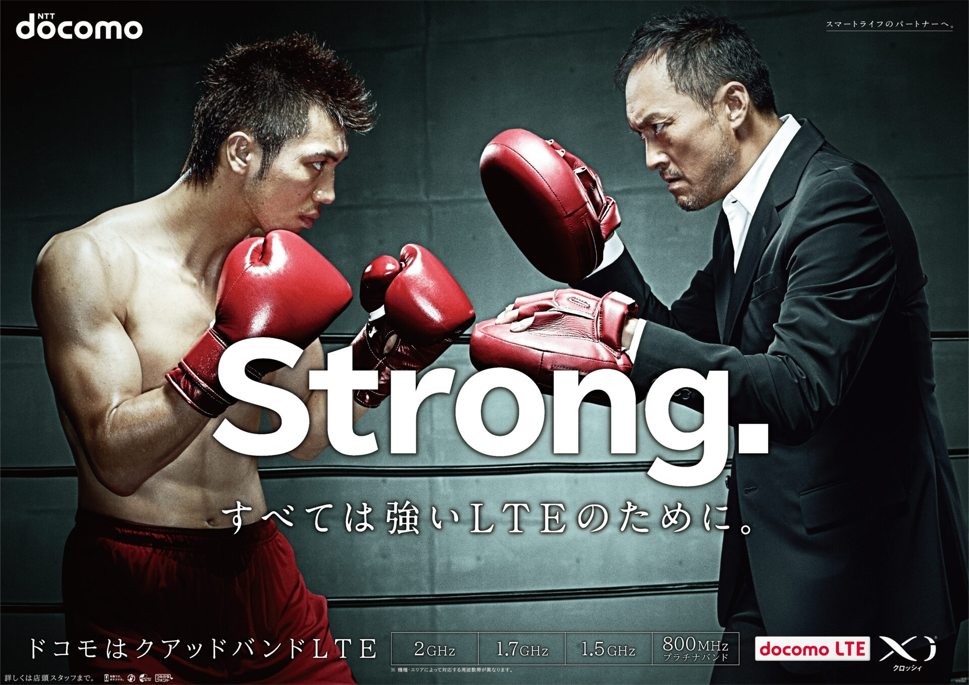 Designer : toruIMAI CreativeDirector : TUGBOAT ArtDirector : kengoKATO CopyWriter : norihisaDohmen Photographer : keibunMIYAMOTO Actor : ryotaMURATA,kenWATANABE Advertising NTT poster Telecommunications TUGBOAT NTTdocomo : Strong.
