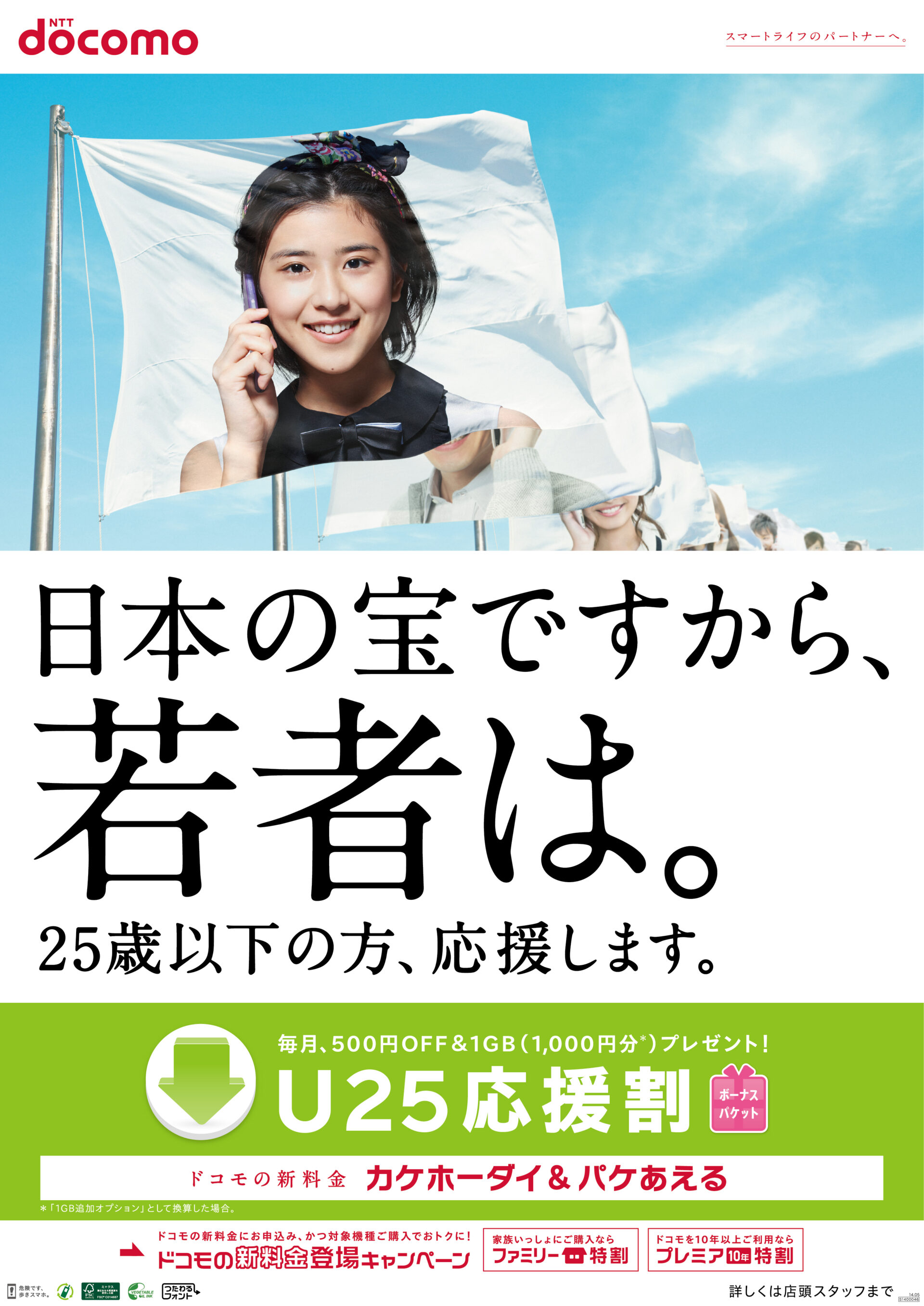 Designer : toruIMAI CreativeDirector : TUGBOAT ArtDirector : kengoKATO CopyWriter : norihisaDohmen Photographer : takakazuAOYAMA Actor : yuinaKUROSHIMA Advertising NTT poster Telecommunications TUGBOAT NTTdocomo : ドコモの新料金