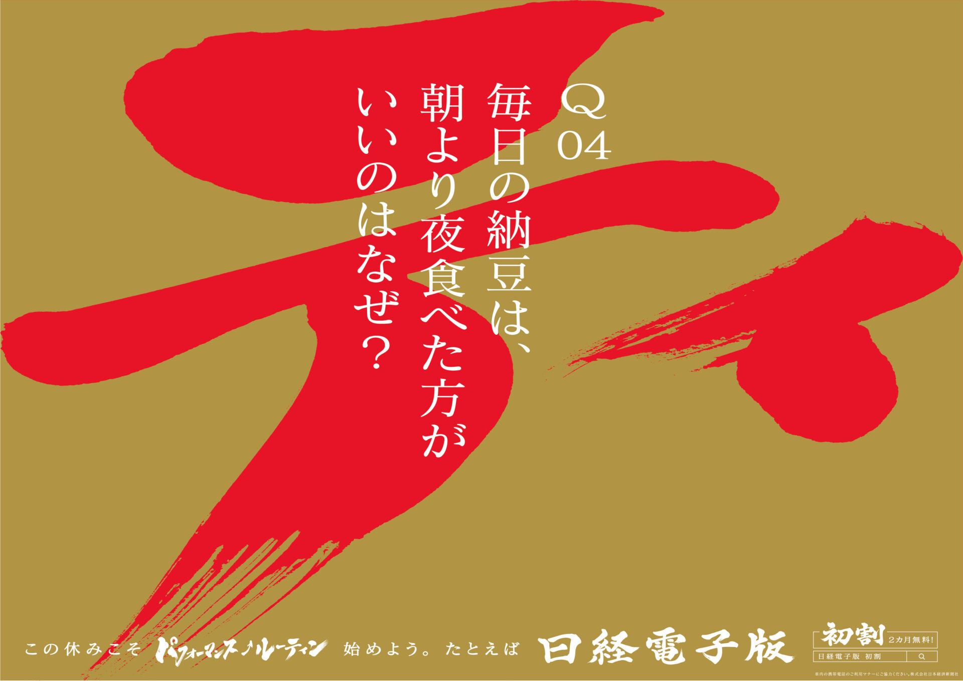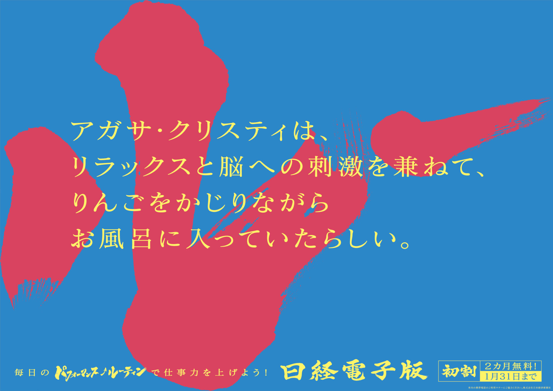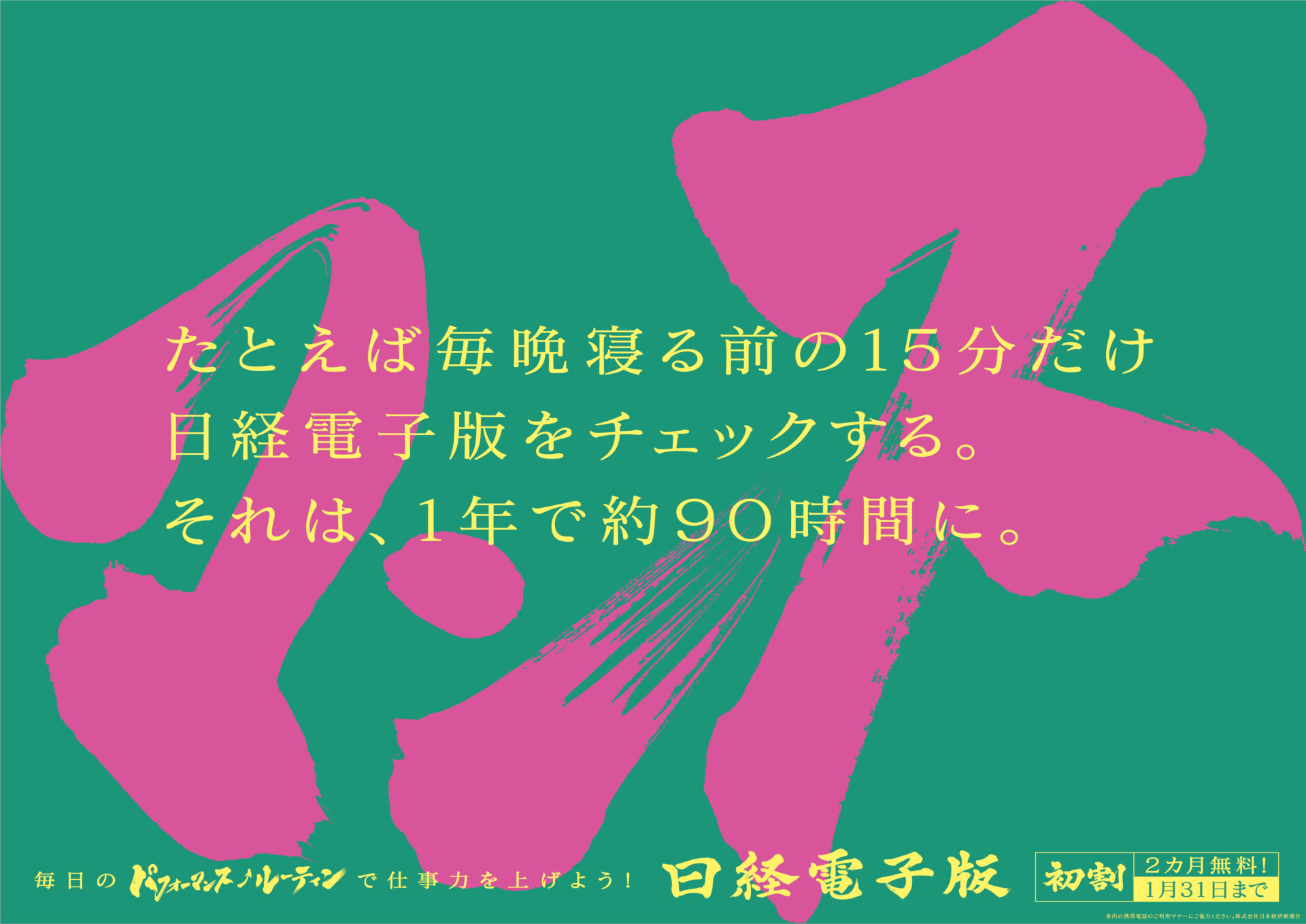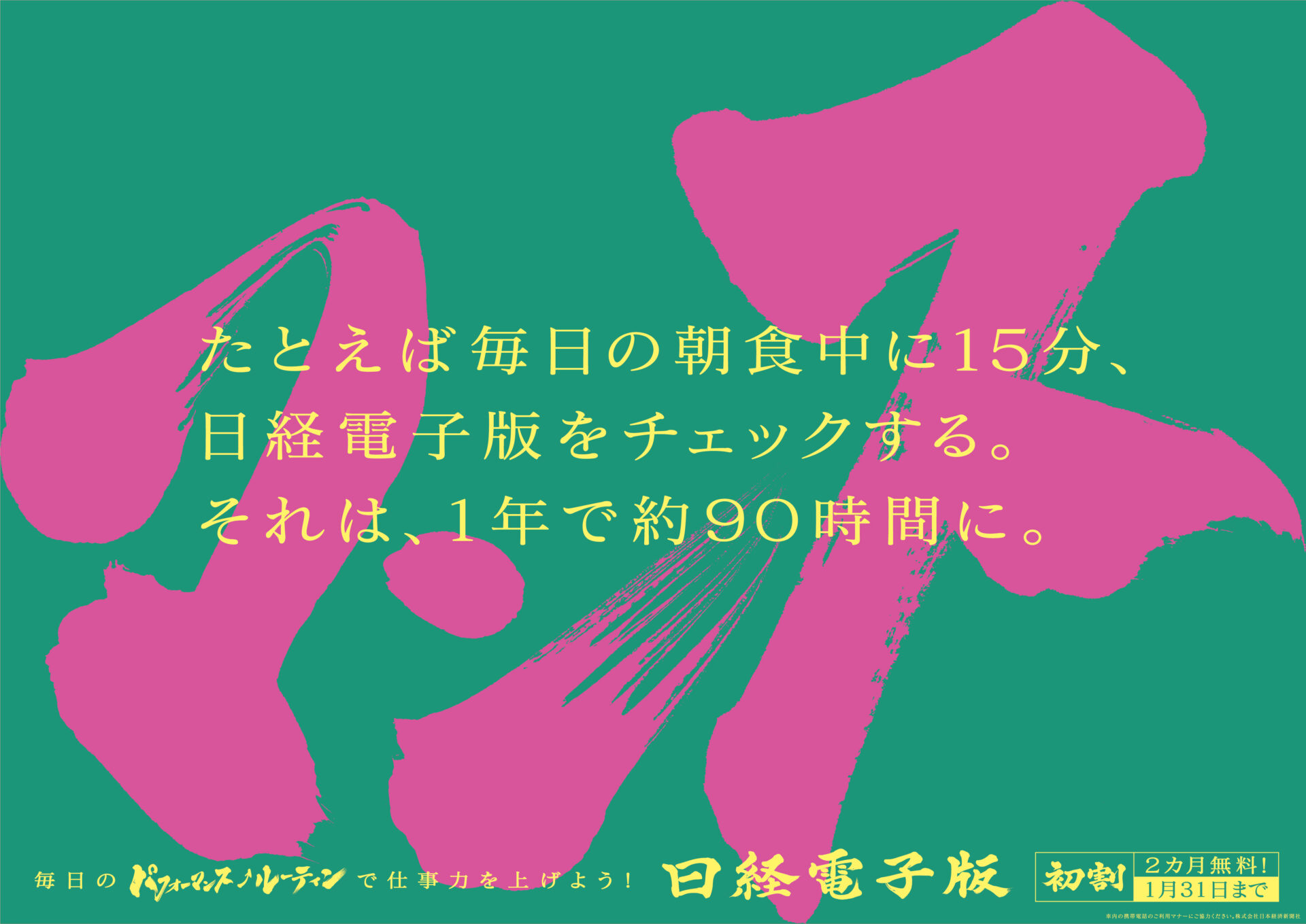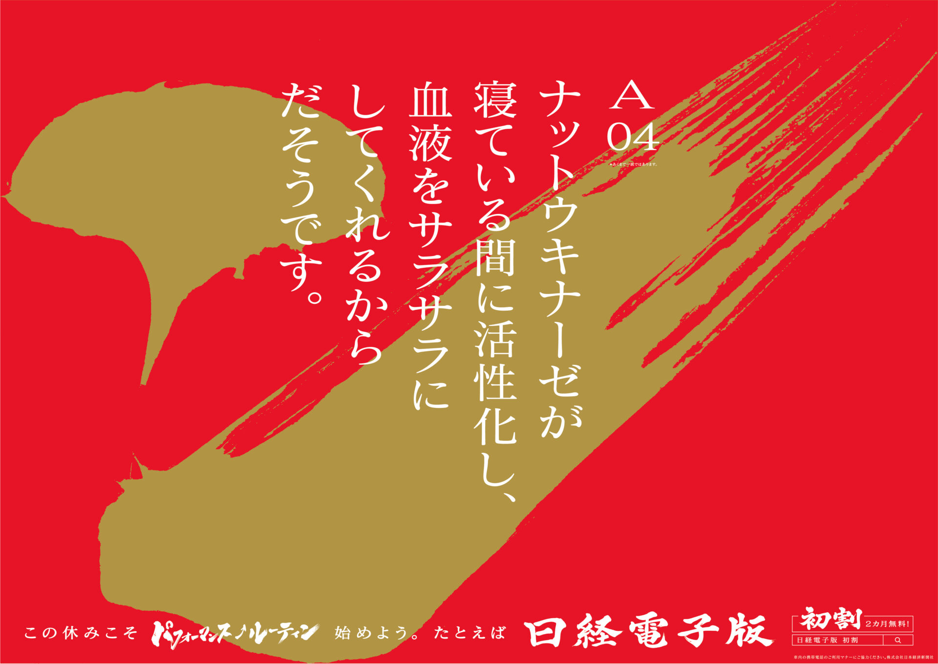 Designer : toruIMAI CreativeDirector : norihisaDOHMEN ArtDirector : kengoKATO CopyWriter : norihisaDOHMEN ArtWork(Text): megumiHIOKI Advertising etc poster publishing TUGBOAT NIKKEI : performance