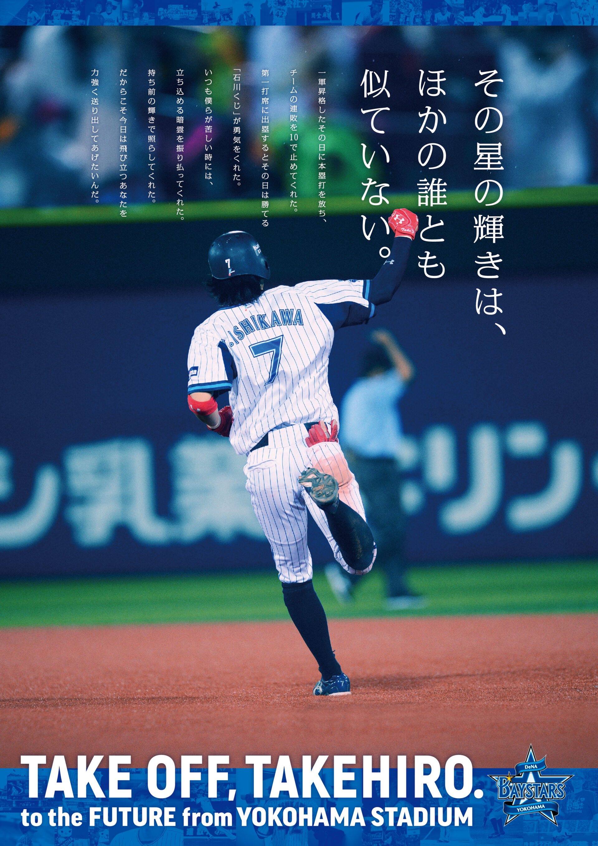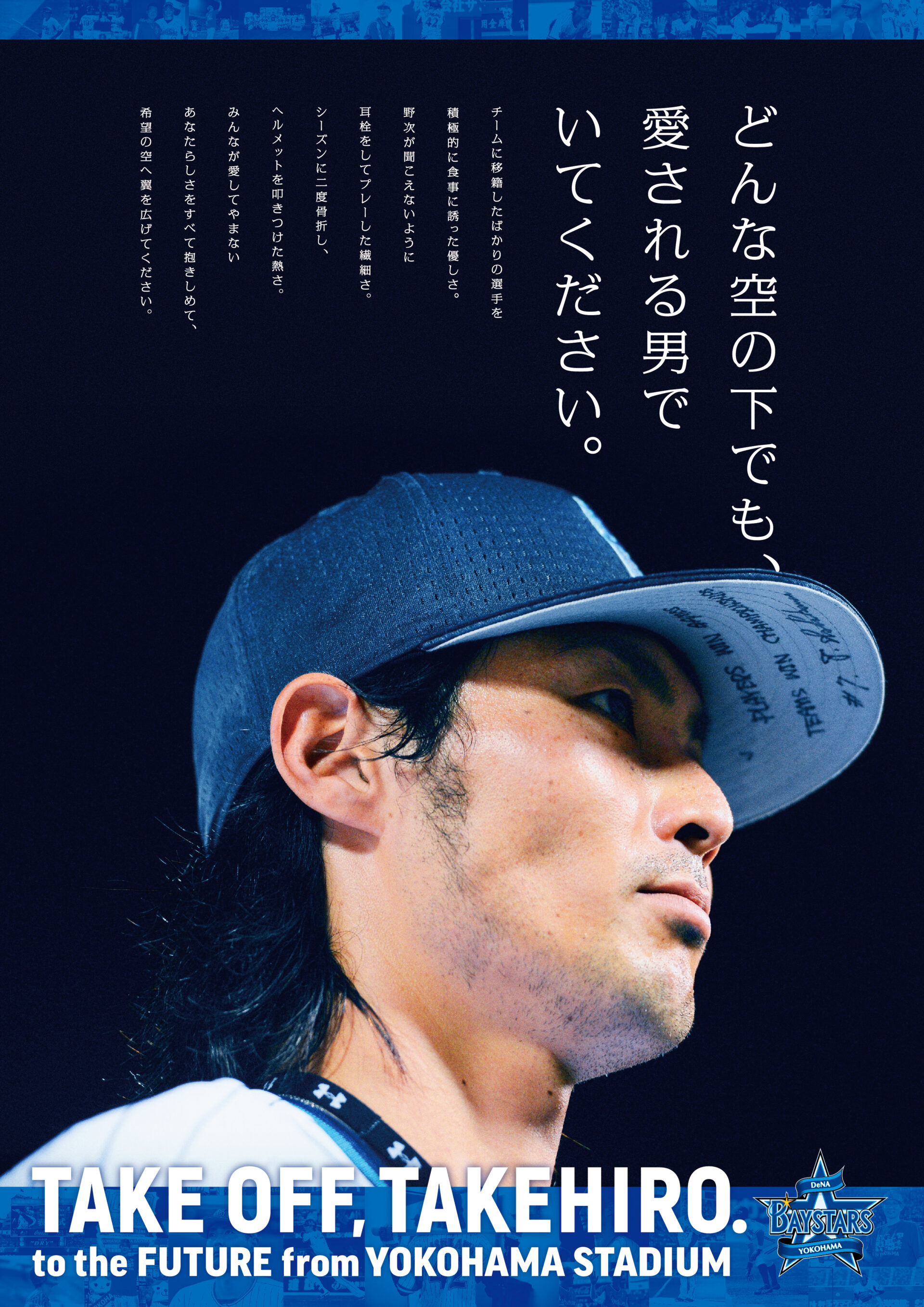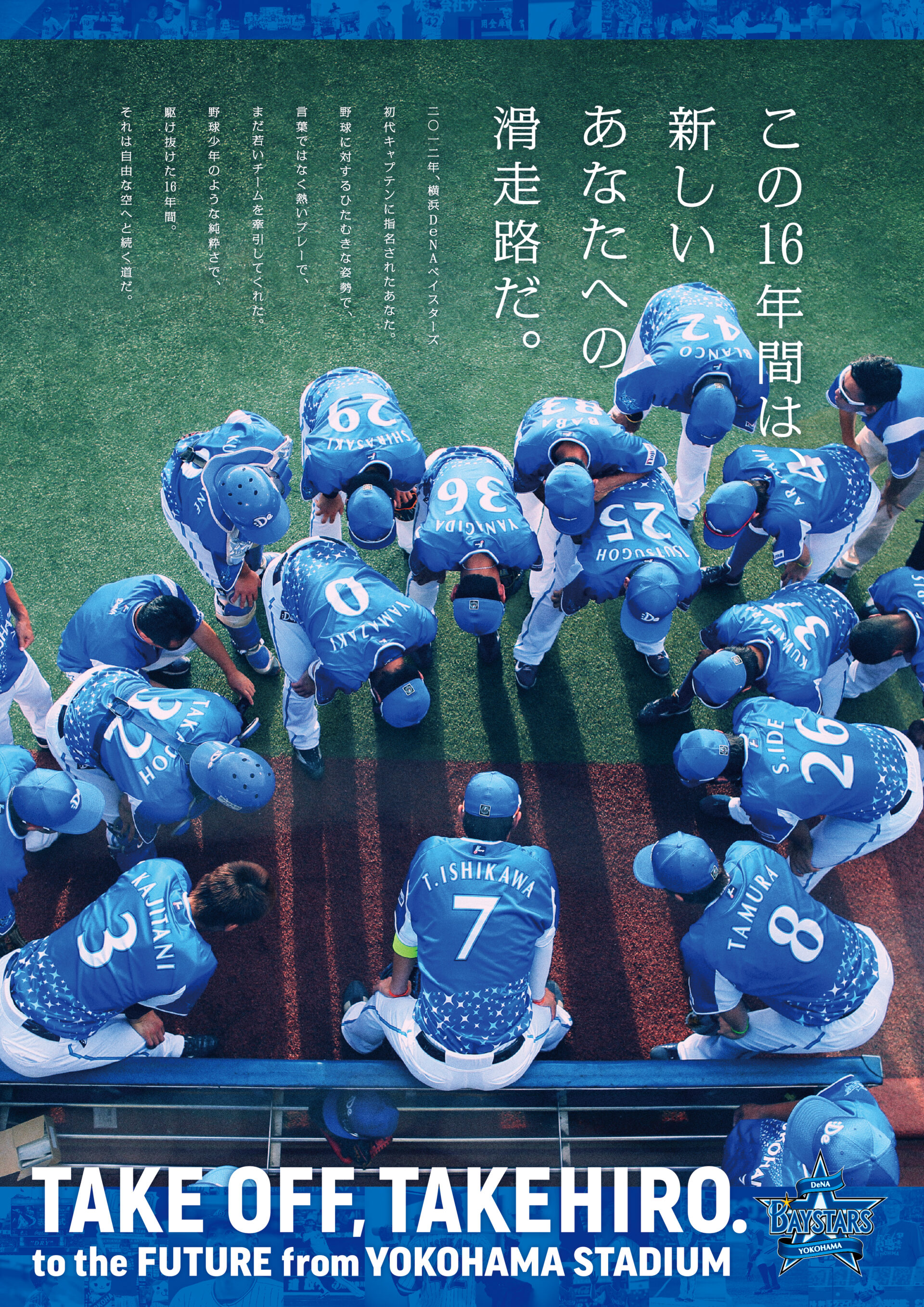 Designer : toruIMAI ArtDirector : kengoKATO CopyWriter : kojiAKAGI Advertising poster sports TUGBOAT YOKOHAMA DeNA BAYSTARS YOKOHAMA DeNA BAYSTARS : TAKE OFF.TAKEHIRO