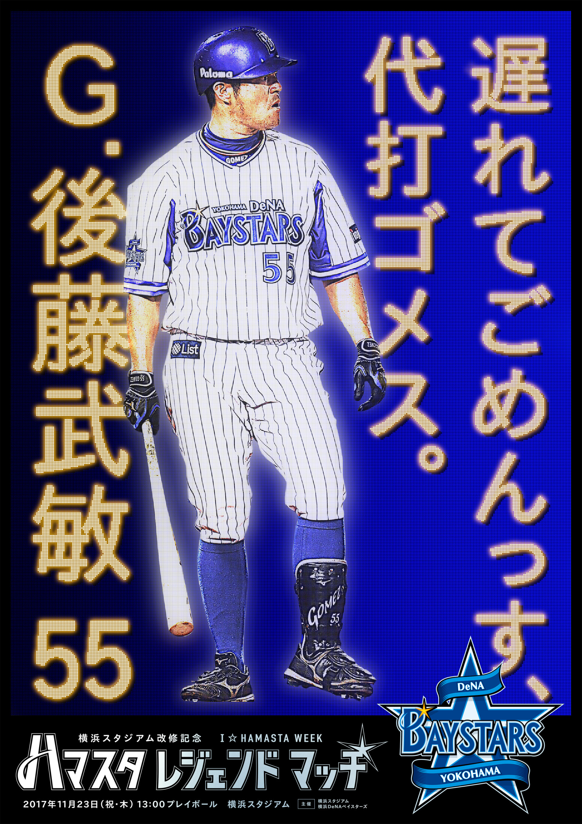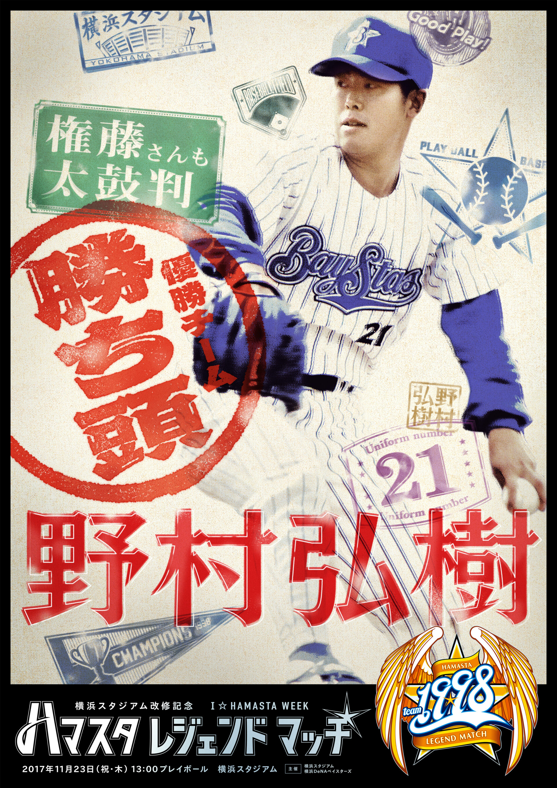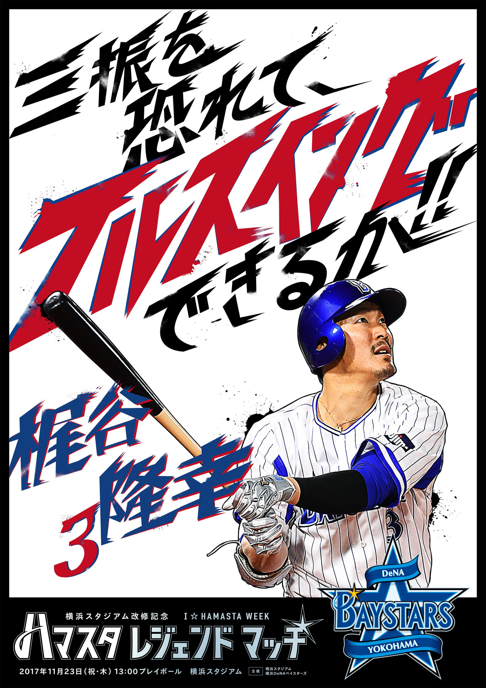 Designer : toruIMAI CreativeDirector : yasumichiOKA ArtDirector : kengoKATO CopyWriter : kojiAKAGI Advertising poster sports TUGBOAT YOKOHAMA DeNA BAYSTARS YOKOHAMA DeNA BAYSTARS : HAMASTA LEGEND MATCH