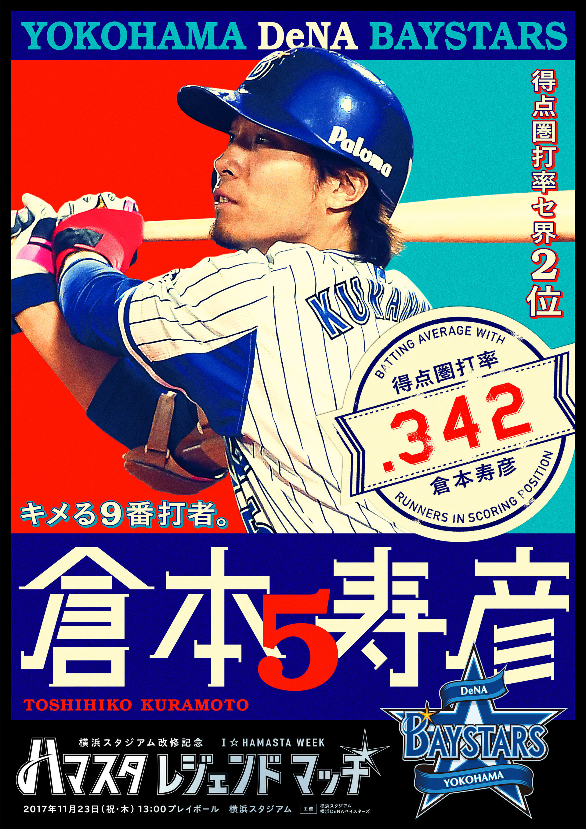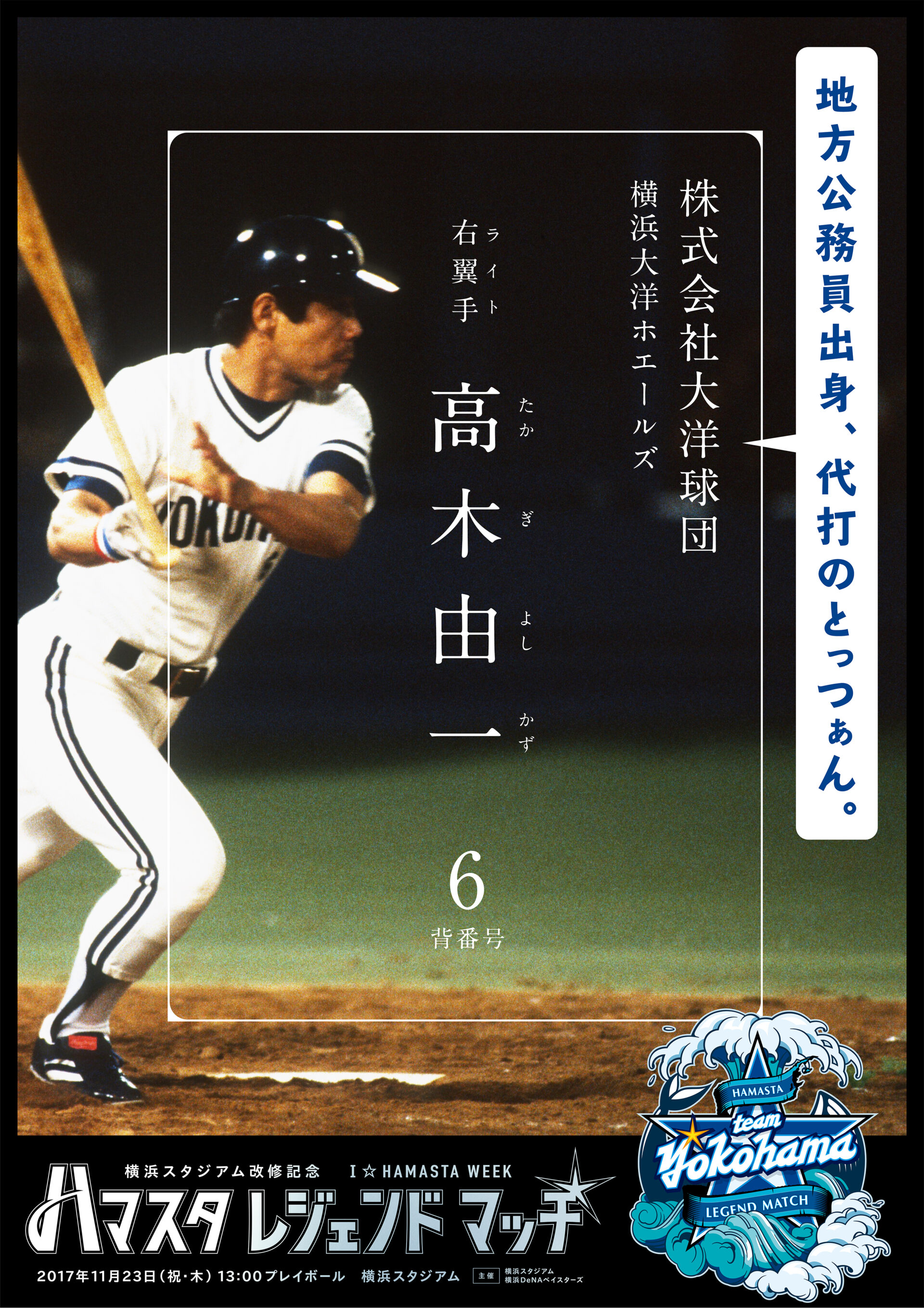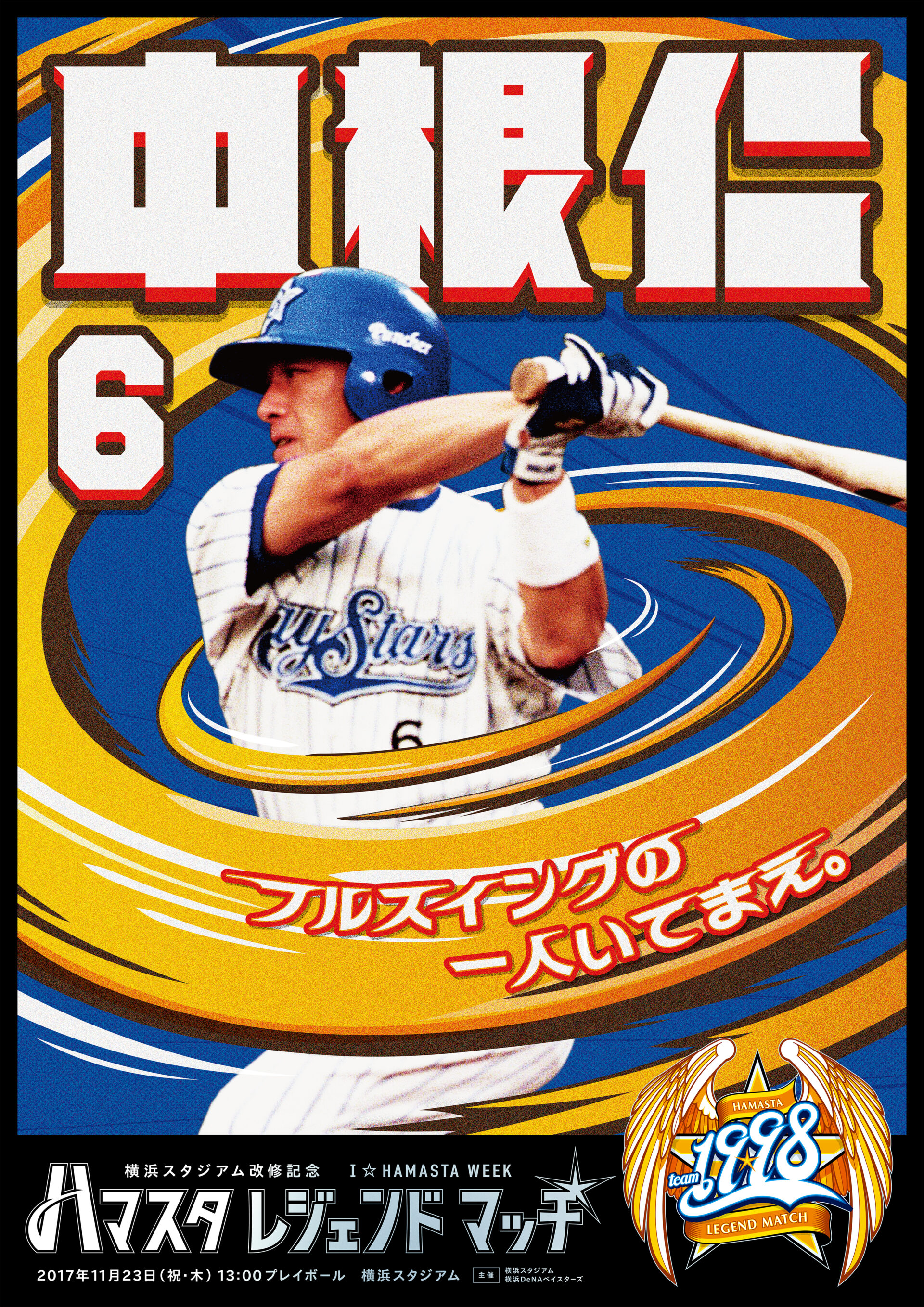 Designer : toruIMAI CreativeDirector : yasumichiOKA ArtDirector : kengoKATO CopyWriter : kojiAKAGI Advertising poster sports TUGBOAT YOKOHAMA DeNA BAYSTARS YOKOHAMA DeNA BAYSTARS : HAMASTA LEGEND MATCH