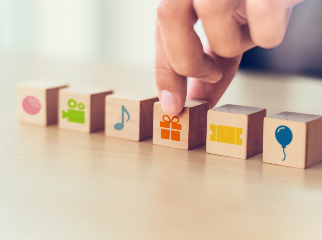 Corporate regulatory and compliance. Quality control management, ISO certification. Product, service quality warranty. Checklist survey and assessment process. Put wooden cube with check mark icon.